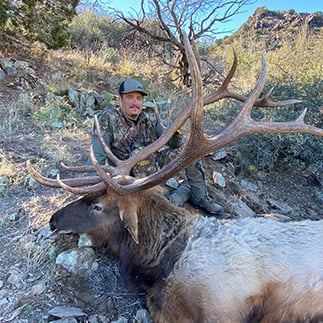 wake up and run to the garage to see if anything was hanging from the rafters. Sometimes we would see my father had been rewarded after a week’s worth of work that would provide our winter meat. Sometimes we saw nothing. I became mesmerized with the hope that one day I could go hunting and help provide meat for our family.When I became 12 years of age, my stepdad enrolled me in hunter safety, and upon graduation, I was granted the right and privilege of hunting Idaho’s game. For Idaho boys, this was our first initiation to becoming a man. That fall, I was shown how to shoot a muzzleloader and was lucky to harvest my first big game animal, a mule deer doe.As I got older, I graduated to more challenging game. I focused mostly on mature mule deer bucks. My love for hunting mule deer bucks shifted to hunting the toughest, most challenging animal to hunt in the West, the elk. I made a promise to myself that one day I would do whatever it took to shoot a trophy bull that would make any man jealous. This dream and goal burned like an everlasting winter bonfire. When I struggled with tough seasons of my life, I would often transport my mind to the high alpine country of Idaho and fantasize about hunting the king of the mountain. This hope and dream kept me alive through several dark periods of my life.I certainly put in the effort to harvest a trophy bull elk but could never get the job done. Some bulls I missed because I came down with “bull fever.” The excitement overwhelmed my body, and I couldn’t make a shot. On another occasion, one magnificent bull was 750 yards away and I didn’t have the confidence in my shooting ability to make the shot with a 30-06 and admired the bull from a distance tending to his herd of receptive cow elk. This moment became the catalyst and fire to drive me to accomplish my dream. I was even more determined to go all out to make this dream a reality, the dream to shoot a magnificent, handsome bull elk with a rack to reach the heavens.I studied the areas of the West that had the best genetics, and Arizona consistently came up as the place to harvest a trophy bull. I applied for a bull elk tag in Arizona 11 years in a row and finally drew. When my name was drawn, I was humbled and shocked. I had drawn what was considered by some men to be one of the best units to hunt trophy elk in the entire West.I capitalized on this opportunity by immediately hiring the best hunting guide service in Arizona, A3 Trophy Hunts. These men knew the area I drew very well, and their reputation was legendary in harvesting mammoth-sized bulls. I also spent several days shooting my rifle and being consistent hitting 1,000-yard targets. Many days were also spent lifting heaving weights in the gym.Jay Lopeman, one of A3’s owners, and I initially talked on the phone after drawing my tag.“Are you in shape? Can you hike? Can you shoot?” Jay asked, matter of factly.“Yes, I’ve been hunting my whole life.” He could hear the amusement in my voice as I somewhat joked in my response. I further stated, “I don’t care how nasty the area is, I’ll hike 20 miles a day if I have to to kill a 400-inch bull.”“Good, because I’m going to see how serious you are to make that happen,” Jay stoically responded.The hunt date finally came, and I travelled 12 hours to the hunting site. After sleeping three hours, Jay and I woke up at midnight and began our hunt at 1 a.m. on opening morning. He didn’t tell me how far we would be hiking, only that we needed to get to our hunting spot at first light. We kept up a good pace and hiked to our location right at daybreak. I’ll admit, I was pretty tired even before the hunt began and found out later that we knocked out eight miles.Now, that’s not eight miles on a flat piece of ground or on a treadmill machine. That’s eight miles sometimes crawling on your hands and knees up steep rock scree slopes and slowly traversing boulders on elevation straight up or down. This is traversing cactus-filled cover that imposed its sharp needles into my soft flesh. I was on high alert because one of the old cowboy trails was littered with unforgiving loose rocks that were begging to sprain and break my ankles.In the first five minutes at daybreak, Jay whispered to me, “I got him. I see your bull.” Across our canyon, the old bull slowly made his way feeding across the steep hillside. I told myself, “I’m going to kill this bull no matter what because I’m not doing that ball busting hike again!”I took my time getting set up for the shot because the bull was 715 yards away and was unaware of our presence directly across the steep, treacherous canyon below. The first shot I took was high and to the right four feet, completely missing the bull. This told me I had strong crosswinds, and I adjusted my shot to account for this.The bull made his way a little down the mountain, and I rushed a shot, trying to anchor him. I scolded myself, taking a stupid shot on a moving animal seven football fields away with 5-10 mile per hour crosswinds. The “bull fever” I felt shook my spirit. The shot ended up being lucky, and I anchored him after breaking his left hip. My “fever” resulted in missing him a few more times before I calmed myself down and took the final shot that harvested him.The whole “10-minute hunt” was surreal and anti-climatic. I had just killed one of the biggest bulls to be taken in all of North America. It felt like I was dreaming. The adrenaline was racing in my veins, and I laid back on my pack to catch my breath and lower my racecar heart rate.We took a healthy one-hour long break to marvel at what just happened. I was still in shock. We eventually made our way down the steep, treacherous canyon, sliding sometimes, and then began the hardest part, the ascent. I crawled on my hands and knees up the steep, scree-filled cactus slope, cursing plenty of four-letter words. By the time I made it to the bull, it had been two and a h