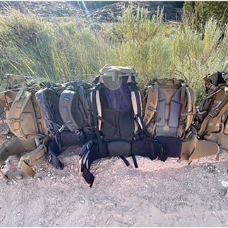 Appropriately-sized frames and suspension were selected from among the current 4500-6000 cubic inch backpacks from Exo Mtn Gear, Kifaru, KUIU, Mystery Ranch, and Stone Glacier. Each backpack was closely examined in the days prior to the weighted comparison trials, ultimately allowing our team the chance to familiarize themselves with their various techniques for adjustment, differences in bag design, solutions for cargo securement, and ever- popular meat shelves. Thereafter, each team member carried each backpack with both 50 lb. and 100 lb. load configurations over mountainous terrain for about a mile per iteration. Here’s a bird’s eye view of the highlights from each of the five backpacks, specific to their performance with comfort under load.