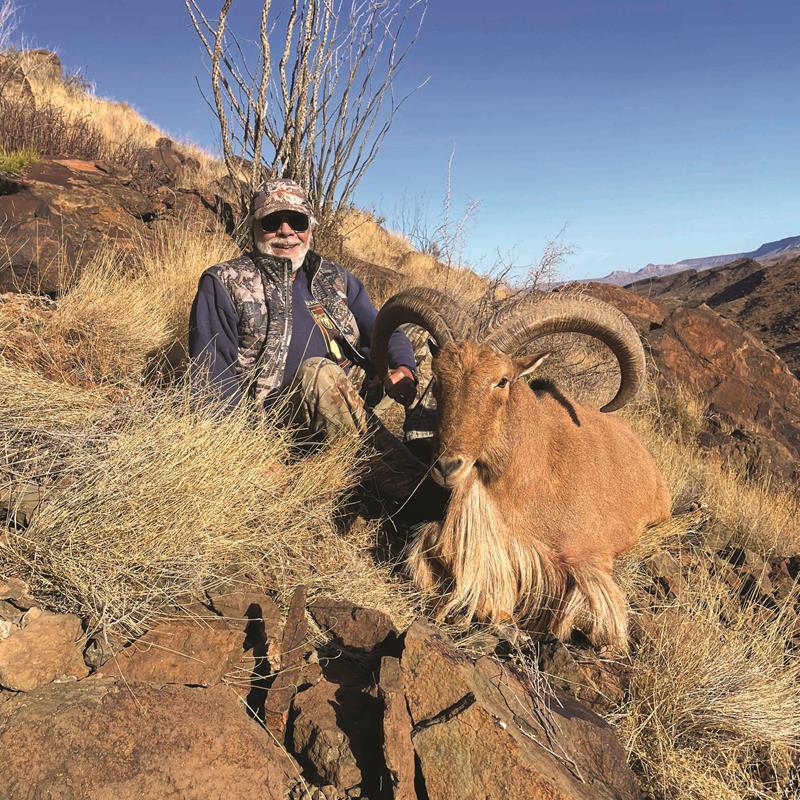 for something different. Having hunted everything in North America except a polar bear, I had interest in this type of hunt and purchased some tickets. I ended up winning the second raffle for a hunt starting January 20, 2022 in West Texas with Hidden Creek Outfitters.The guides met us in Van Horn, Texas, and an hour and half later, we arrived at the ranch. The area was approximately 75,000 acres of very rugged and mostly roadless terrain near the border. Accommodations were a nice ranch house with a chef providing the excellent meals. My guide, River, and I hunted the first afternoon. We saw some nice rams, but they were in an inaccessible spot. Most hunting is by spot and stalk.The next morning, we returned to the same area but could not locate the rams. After a full day of covering numerous other areas, we finally located a group of three nice rams just before dark. After closing the distance to 340 yards, I was able to take the largest ram with my 7mm Saum. Due to the rugged terrain, we opted to go back in the next morning rather than hiking out in the dark. We hiked in the next morning and packed it out. The ram was 30" and old. My 75