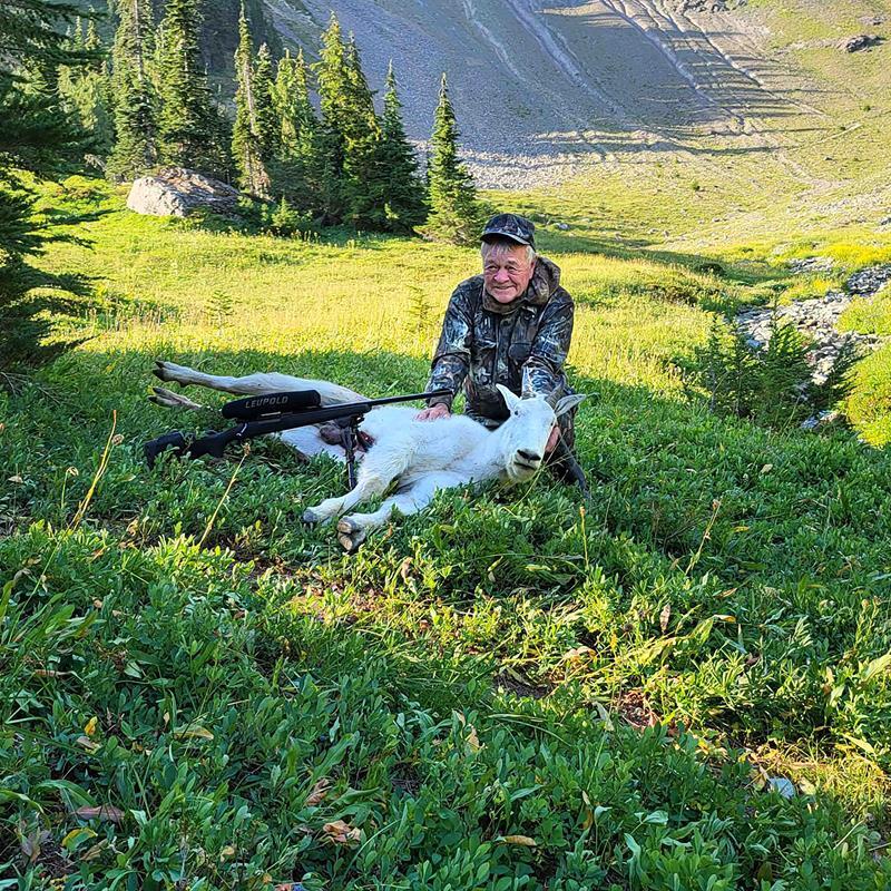 “What’s the plan?” Bill asked. I told him we were going up to that bush under the rim rock and he was going to kill that goat. After an hour of hiking and crossing two scree fields, we got to the bush. Somewhere in the 45 minutes of controlled chaos trying to get Bill in a comfortable position to make the 160-yard shot, he informed me that he had not shot a scoped rifle since 1972. According to my friend, Beau, the look on my face was priceless.