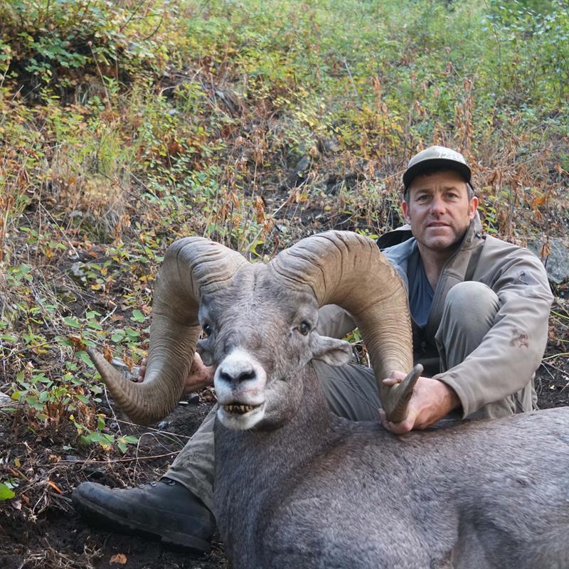 After six hours of failed stalk attempts and waiting out multiple passing thunderstorms, we decided our best approach was to back out and remain patient. Resituating ourselves across the canyon from the rams, we hoped they would feed our direction towards evening. Picking apart the heavy vegetation and timber, every now and then we would catch a glimpse of the rams mingling. This gave us hope we might catch a break. Out of nowhere, one ram appeared in a small opening in the trees straight across from us and he locked on to our presence. Tom quickly adjusted his gun setup as we all stared at the giant ram. The first thing we noticed was his mass. With the pressure of drawing a once-in-a-lifetime tag, we as outfitters have the responsibility of helping hunters make good decisions on which ram meets their goal. In this particular instance, we were experiencing controlled chaos. On the inside, we were wound tight and amped up at the sheer size of the ram, while on the outside, we appeared calm and under control. After a unanimous group decision, which didn’t take long, the ram was worthy of Tom’s tag and we gave him the green light to shoot. Tom is an experienced sheep hunter, killing a Dall sheep in the Brooks Range and a Rocky in his home state of Idaho. As a result, he kept his emotions in check and zipped a bullet into the ram, making a picture-perfect shot. The ram disappeared out of sight, tumbling down the mountain. At this point, we had no idea it was Super Chip, but we did know it was a giant ram for Tom.