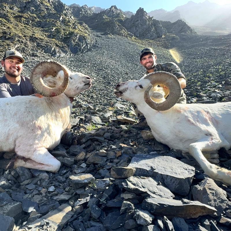 It was an indescribable moment. We both had our first rams down. We had doubled after a grueling journey. We made it down the mountain and put hands on our rams. Hunter found the horn that had blown off, and we pulled mine down to his. While taking pictures, reality set in. We had just achieved our dream of hunting Dall sheep in Alaska. We were green sheep hunters who had only been in Alaska for a handful of years, yet here we were standing over these magnificent animals.