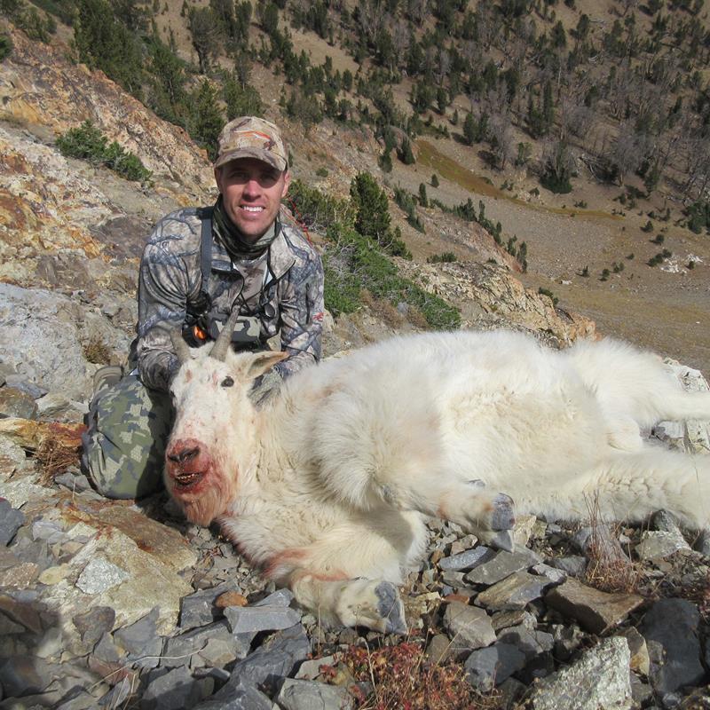 Idaho mountain goat tag. There were only four goat tags for this unit and I was the only non-resident, about a 2% chance of drawing. After many western hunts under my belt and being much better equipped, I pursued this self-guided, public land, backcountry adventure solo. I talked to biologists, the Forest Service, and prior hunters in this unit and gathered a lot of valuable intelligence on where to go to find mountain goats. This was my first hunting trip involving a flight, which added a lot of logistical challenges to plan for.I arrived to my unit midday on Friday, September 21st and glassed along the road on the way to the trailhead and spotted one bedded goat. Once the road ended, I launched with my entire pack loaded for several days of hunting from a spike camp. I glassed both sides of a timbered ridge on my way in, trying to find goats that would influence the location of my spike camp. I saw one solo goat feeding across a slope about a mile away, and as it turned out, that was the same ridge and perhaps the same goat that I would harvest the next afternoon. That night, I set up spike camp near a high alpine lake that had a nanny and kid feeding above me.In the morning, a solo goat was directly above the lake at about 450 yards. It was too high for a shot and the goat would have tumbled very far, so I moved on up the alpine basin. I glassed four goats on the far side of the basin nearly a mile away that were a little lower on a grass-covered scree, so I moved quickly knowing they were in more of a shootable location. By the time I got there about a half hour later, all four, two adults and two kids, had walked straight up and out of this basin and I caught them on their departure. It was amazing to see these animals traverse well over 1,000 feet up a steep cliff as a casual part of their morning routine. Meanwhile, I had invested a lot of energy to get there, so I had to backtrack around to the other side of my spike camp to the slope that had the goat from the evening before. I got there closer to 11 a.m., and as I walked up a sparsely vegetated draw, heading to a saddle, I glassed a goat on the side of the basin. They were in a rocky area with small shrubs, so it was hard to get a good look at all three, but after several angles, I determined they were two nannies and a kid. I didn’t realize it until reviewing photos later, but it turned out the billy I shot was bedded in the shade a couple hundred yards above those nannies and I never saw it until later when I was at a better angle at higher elevation.I proceeded to the saddle, which based on my scouting, was my planned approach that would allow me to get up on top of the ridges. It worked, and from there, I could glass an incredible amount of country. The only problem was that the ridges I wanted to traverse to glass from above and shoot down were incredibly steep and risky. At this point, I came to the realization that this country was almost too big to spend more time in given how many of the goats were inaccessible. I was planning on heading back to load up my spike camp and head to my plan B area, which was more gentle country that held goats. Not long after dropping off the saddle, I was glassing that same hillside with the nannies and spotted a bedded goat in the shade. I put my spotting scope on it, and at 475 yards, I could tell the bases of the horns were larger and closer together, which is indicative of a billy. Game on!I was at about the same elevation as the goat but needed to close the distance, so I dropped out of sight as I crossed the loose rocks to the next rocky outcrop. I resighted the goat still bedded and was at 275 yards, which was a good distance for my rifle. I took my time getting set up and tried to catch my breath as my heartbeats were rocking my rifle crosshairs. I got my camera set up on the tripod, and then right as I was getting ready for the shot, I looked up to see the goat on its feet and heading up and away. My patient shot quickly turned into a rush. I hit record on the camera, loaded a round into my action, and within a few seconds, I sent a round through the front shoulder. I could see the goat drop and slide back to its original bed. It stayed there, but I could see continued movement, so I eventually had to take a second shot. With another chest shot, the goat tumbled about 100 yards down the hill before coming to rest. I dropped down to the goat, and as I approached, I could see both horns were broken from the fall. I was happy to confirm that indeed it was a billy.I shot at about 1 p.m., so I proceeded to butcher the goat and packed all the deboned meat, head, and all my day hunting gear to the truck, which was about two miles away and about 2,000 feet lower. The harvest location was at 10,009 feet. The load was huge, and I realized I couldn’t make it the whole way in one trip, so I stashed my heavier items (spotting scope, food, misc. gear) under a fallen tree, marked it with GPS, and proceeded to get the meat and head back to the cooler on ice that night. It was very slow going, and I was completely spent when I finally arrived to the vehicle near dusk. The next morning, I woke up and had coffee and tenderloin sautéed in butter for breakfast before heading back up to get my tent and stashed gear.On Monday morning, I checked the goat in with the biologist and was surprised to learn that the billy was 6.5 years old with 5" bases. She said it was the perfect goat to harvest as it probably only had one more year of breeding in its life. It was an incredible adventure that ended quickly, allowing me to get back to family and work. I’ll never be able to hunt mountain goats in Idaho again, but with four young kids, that means a lot of names in the hat some day.