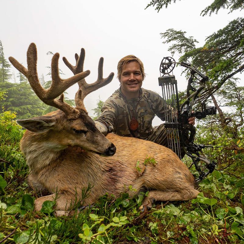 My schedule cleared up in 2018, and my 16-year-old son, Jake, and I planned a two-week backpacking adventure to bowhunt blacktails in the early season alpine. We were dropped by a floatplane by a remote lake on July 30th. As luck would have it on opening day, Jake arrowed a gorgeous 5x5 non-typical. It was his first animal to qualify for the Pope and Young record book. I could see Jake’s joy as he stood over his buck for the first time and put his hands on those beautiful velvet antlers. He was so proud and so thankful.