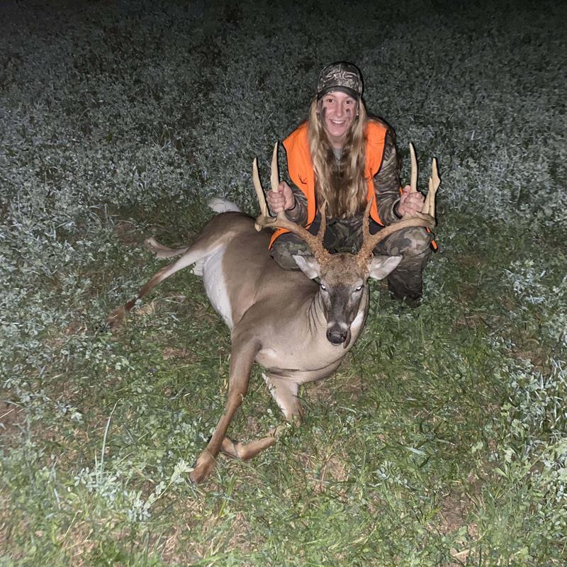 On to deer! Of course, Iowa is one of the coveted tags. Southern Iowa produces some of the biggest bucks in the country, but one of the secrets is the mid-September youth season. The ability to pattern a big buck eating soybeans or clover is an advantage a hunter doesn’t always get in October/November. Lucky Lauren was up for opening weekend, and the weather forecast said the temperatures were going to be cooler. It was a recipe for a good afternoon of deer movement. We were set up with a blind in a grass strip strategically between a green soybean field and a clover field. Just like clockwork, the deer movement started a couple hours before sunset. We were watching 10 different small bucks, but all were slightly out of range of her 20-gauge shotgun slug. After watching and waiting from behind the blind, with about five minutes of shooting light left, the big bucks started walking out of the timber. I told her, “Shoot one of those!” With about three minutes to go, Lucky Lauren had her big buck.