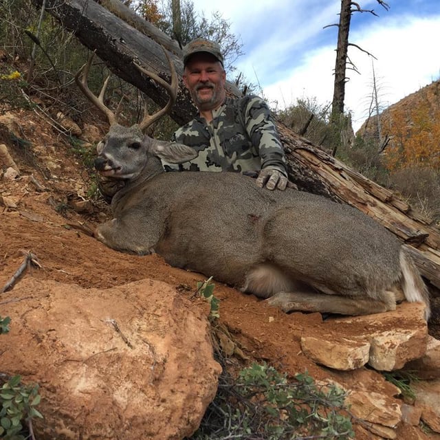 What a hunt this turned out to be. I decided to hire Dan Adler of Diamond Outfitters, and what an awesome choice that turned out to be. I met up with my guide, Brett, in late October and the hunt was on. We spent the next four days glassing from dawn to dusk with nothing more than a few does spotted. We decided to move camp, but on the way down, we received a tip from one of Dan’s other guides, Nate, and Paul who had spotted a good buck and wanted us to head their direction. We found the buck halfway up on the opposite side of the canyon. It was a 525-yard shot. I wasn’t comfortable with that long of a shot, but they let me use their long-range rifle. After some quick instructions and a lot of encouragement, we got set up for the shot. It was true, and I had an awesome trophy Coues deer on the opposite hillside. It took over an hour to hike down one side and up the other to get to the deer. It was so much more than I ever expected. My guides were awesome, and I can’t thank them enough. It goes to show that if you are willing to put in the time and effort good things will happen.