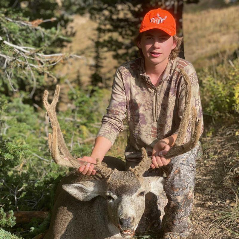 To make matters worse, visibility was limited to a mile or less due to the now common summer wildfires in the western U.S. Add to that unseasonably warm, sunny weather with little rain over the summer and it made for tough hunting conditions. Nevertheless, we stuck with it, and late opening morning, while hiking to another canyon in the drainage, we stumbled upon two nice bucks, one in velvet and one hard- horned, slowly running 200 yards ahead of us towards the cover of some thick pines and a deep canyon. I quickly judged one of the bucks to be a shooter and called out the range to my son. I told him to kill the larger if he was comfortable with the shot. He fired and scored a solid hit on the bigger buck. Not long after, my son, Tommy, was holding the rack of his first Wyoming backcountry velvet mule deer in his hands. He had a smile on his face and a deep sense of accomplishment and gratitude in his heart. The canyon this buck died in was steep, rugged, and magnificent.