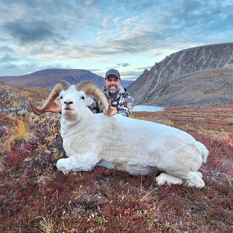 was ready to plan my next adventure. One of the outfitters Isaiah recommended was Ross Elliott of Ruby Range Outfitters. After contacting him and talking things over with Ross, it just felt like the right fit. On January 5, 2022, I booked my first sheep hunt for September 9, 2023.As time never stops, the months went by quickly, and just like that, it was September 7, 2023 and I was on a plane to Whitehorse, Yukon. After a long day of flights, I finally arrived at about 11:30 that evening. Ross planned to have me picked up at my hotel the following morning at about 7:30. I met up with Ross at his place, and we headed out. It was about a three and a half- hour drive to where we would get on a boat and cross the lake to where we would meet the guides and ride for about three hours on horseback to base camp. The winds were picking up, and we had to hurry to get across the lake before it became too rough or we wouldn’t make it into camp that day. Thankfully, we were able to make it across where I met my guide, Dustin Elliott, Ross’ son. Dustin is a veteran guide and has guided over 60 successful sheep hunts. He is an amazing guide and wrangler.We made it to base camp where we would be hunting out of for the next few days. Talking with Dustin that evening, we planned for the morning’s hunt. Dustin already had three rams located, but we needed to go in and get a closer look to see if there was a mature ram in the bunch. The following morning, we took the horses as far as we could and then climbed the backside of the mountain to a saddle where we could glass the next drainage.From there, we spotted the rams. They were still too far away to hunt them that day, but we did confirm there was a legal ram. It was super windy difficult to steady the spotting scopes, but we could make out one ram that we wanted to check out closer tomorrow.The next day, we took the horses up the drainage the rams were in. Once we were close, we tied up the horses and climbed a bit to see if we could get eyes on them. Dustin confirmed they were still there, so the stalk was on. We were able to get to 325 yards where we could see the big ram bedded down. We got set up, and Dustin aged him at 8 years old. He had a full curl and twisted out. Once again, the winds were wild, so we discussed if he stood up, I would aim about a foot and a half left of where we wanted to hit and the wind should push it right into him. The ram finally stood up after about an hour and a half. I was calm, rock solid steady, and 100% confident this ram was going to drop. I squeezed the trigger, and it was a clear miss. The wind pushed my bullet, but it also lifted it from the updraft that was hitting the mountain and it went right over his back. I was in disbelief. It was a humbling moment, but it was only day two and I felt we would get another opportunity. I just had to suck it up and get back at it.We hunted out of this same camp for two more days. Then, Dustin and I decided we would take day five to move into a spike camp so we could check out some new country in hopes of finding a shooter.On day six, we woke up to some rain and fog, so it was a slow start. The winds quickly came up that day, so we were able to get out and check out some areas, but it was high winds and no sheep. Trying to keep a positive attitude, Dustin and I had a good meal and headed to the tents in hopes that the winds would calm and tomorrow would be a great day.On day seven, we woke up to calm winds and clear skies. This was exciting for us as we were going to be hunting from our spike camp on foot and we’d make about a 10-mile loop. From camp, we had to gain about 2,500 feet of elevation where we could then hunt the tops and glass into several basins and different areas. That day, we found a band of six rams in a basin below us, but they were all too young. As we moved on, we found another band of five rams around two miles away across the canyon bedded in the cliffs. There was one ram that appeared to be older, but we couldn’t be sure it was legal. With where the rams were, we decided it wasn’t worth the risk of taking another day to get to them just to find out they weren’t legal, so we moved on. As we neared the end of the hunt that day, we set up to glass into the next area we would move camps into tomorrow. Dustin glassed up a group of ewes and lambs and bedded up beside them were four rams. The sheep were probably around four or five miles away at this point, but Dustin could see there were at least two good rams worth taking a closer look at. We headed back to camp and planned to move into the new camp tomorrow.The next morning, we once again woke up to high winds. We started the process of packing up camp and loading the horses for the trek to our final camp. As we got closer, there was one spot we could set up the scopes to see if the rams were still in the same spot. Dustin confirmed they were. The four rams were skylined, and again, we could see that there were two legal rams. I was feeling good, and we headed into camp and got settled.The next morning, I woke up feeling confident. We were going into a new area and knew there were at least two good rams we would be looking for. The only thing on my mind was rams. I had four days to make it happen. We saddled up and headed out. With the rain last night, the mountains were fogged in but would clear out with the winds by the time we reached the sheep. This would prove to be a long day. We finally found the group of sheep the five rams were in, but they were with a group of about 30 ewes and lambs. They were bedded on a flat top just on the edge of the cliffs. They were in the worst spot possible, and we just had to wait them out and hope they would feed into the valley away from the cliffs before the day’s end.Finally, at about 5:00, they started feeding away from the cliffs. This would provide us with the opportunity to climb up the cliffside and hopefully get into a position to see the rams. By
