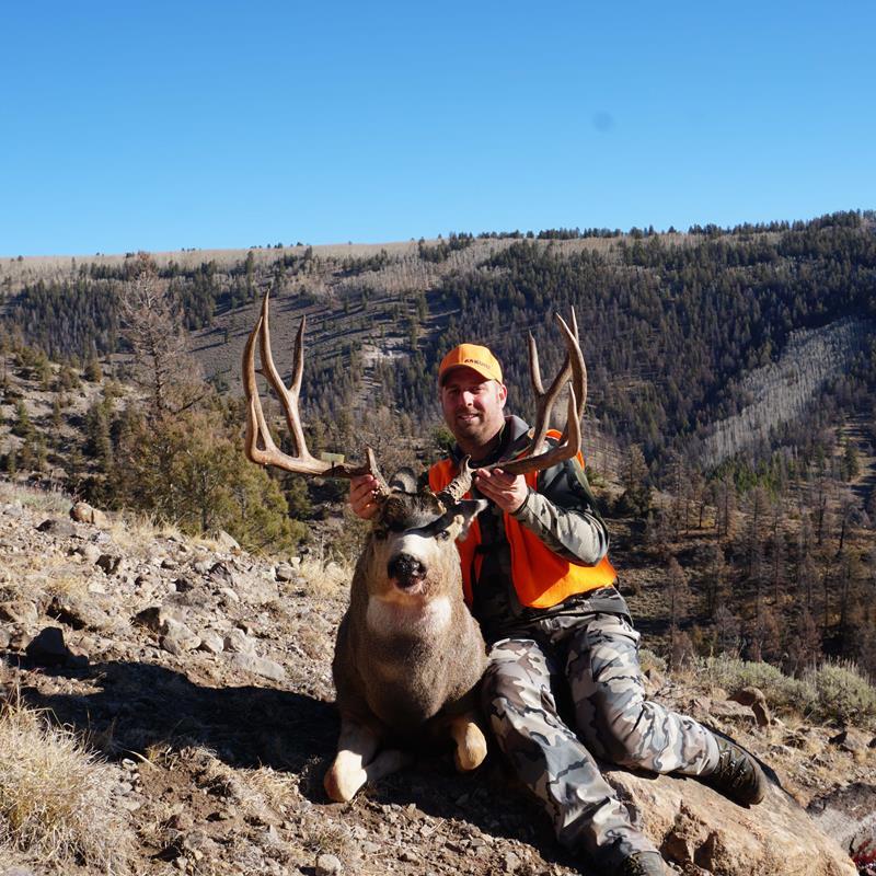 Mackenzie and I snuck into the meadow where I saw all the bucks previously. There was a 3x4 buck feeding there, but I told her to hold out for a bigger buck. I left her to watch that meadow while I worked my way over to where the big buck had bedded earlier. I came to a small opening I had picked on onXmaps to glass the meadow from, but I found it thicker than what I had expected. I scanned the area quickly, and through a small opening down the mountain, 320 yards away, I saw a tawny patch of hide. I threw my binos up and knew it was a big buck. I quickly got set up, but the buck moved out of the opening. My heart dropped. I could see him through the trees, but I did not have a clear shot. I contemplated moving, but I could not see any other openings. Suddenly, the buck turned and started feeding back. He stopped perfectly in the small opening, and I fired. A flood of emotions washed over me as I watched the buck’s legs fold and he dropped.
