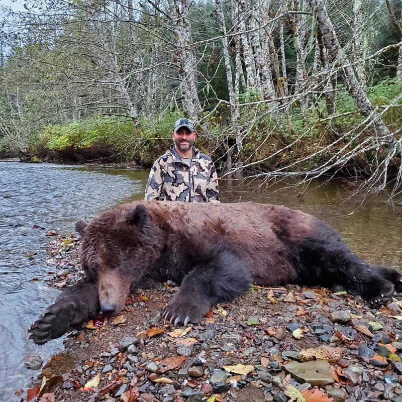 offering a last-second cancelation brown bear hunt in Alaska changed everything. By the morning of October 9th, I was sitting in the harbor in Hoonah, Alaska with Lucas Clark, owner of Guide Creek Outfitters, getting ready to board a boat that would be my home for the next seven days.The first three days were spent cruising the water and scanning the beaches for travelling bears. The local marine life was amazing to see. We had constant encounters with sea lions, seals, and sea otters. Often, out of nowhere, whales would breach the water, causing an unbelievable eruption in the normally calm water. In the late evenings, we would sneak into large grass flats and sit until dark, hoping to catch a bear coming out to feed. Although we spotted four different bears during these days, none fit the profile of the bear we were looking for. This hunt came at the tail end of the concentrated food supply down low, and Lucas warned the bears would begin moving up the mountains in search of the last of the berry patches that remained, thus making them much more difficult to hunt.On day four, Lucas suggested that we hit a salmon stream and slowly work our way up, searching for a feeding bear. He explained that most of the salmon, except for the silvers and a few coho, had already left, but we may get lucky and find a bear still roaming the banks looking for fish that had been buried in the banks after a recent period of high water. This form of hunting bear really got me excited for the day as this is how I had always pictured going after one of these giants.As we started up the stream, we immediately found a set of fresh tracks headed upriver that Lucas felt belonged to a shootable bear. After a few more evaluations of tracks further up the river, in a low voice, he told me that he felt sure we would catch up to this bear and to be ready as it could be a very quick shot. We continued upriver for another mile or so, and as we rounded a corner, he spotted a bear feeding in a waterhole. We quickly got to one side of the bank, and he began to evaluate the bear. This bear was feeding down toward us, unlike the tracks we were following, which were heading upriver. He soon made the call that it was a sow and not a bear we were going to take. She continued to feed downriver, and in no time, she was within 15 yards. She was magnificent looking with the sun shining on her and the water glistening off her fur. At 10 yards, she sensed something was not right and disappeared like a ghost into the thick brush beside the river.I was filled with excitement of my first up close encounter of a brown bear and a little disappointment that she was not our target bear. We continued following the river and the tracks for a couple more miles until we reached a hole that was full of silvers. As we admired the amount of fish in the water, we advanced a few steps past the pool, talking about the fish, when suddenly, Lucas grabbed my shoulder and said, “Shoot him!” There, on the brushy high wall of the river not 10 yards away, was our bear trying to slip back down the river. I did not have a round chambered, and by the time I was loaded and ready for the shot, all I could see was his backend melting into the brush. We both stared at each other in shock that all of this had just happened. I felt an instant dread in my stomach that our opportunity for a bear had just faded into the Alaskan bush.Lucas and I continued up the river, following the tracks just to make sure the bear we saw was the bear we were following. Sure enough, after about half a mile, we began seeing footprints heading downriver and no more heading up. At this point, it was around 3:30 in the afternoon, and Lucas thought that if the bear did not smell us, there was a chance he would come back on the river at some point. He suggested that we hike a couple adjacent logging roads, hoping to run into another bear. This would also allow us to kill a little time to let the wind switch and put us in position to come through the river section he thought the bear might be on at prime time.At around 5:00, we began slowly heading downriver, anticipating what we would see around every corner. An hour later, we had just gone through the section that I felt held our best opportunity, when suddenly, Lucas grabbed my shoulder. There, 75 yards downstream, was a bear in a deep pool of water. I drooped to a sitting position, chambered a round, and waited for the confirmation that this was our bear. The bear crossed the river, and because of a section of brush, we had to move to the other side as well. He was just getting ready to enter another hole of water when Lucas gave me the go ahead to take the shot. At the shot, the bear buckled and dropped. Two more insurance shots guaranteed that he was anchored.As I approached the downed bear, it was one of the few times when ground growing occurred instead of ground shrinkage. He was absolutely huge! I could not even lift his head out of the water by myself. Lucas quickly confirmed that this was indeed the bear we encountered earlier in the day. We snapped tons of pictures and then began the skinning process. Being in the middle of bear country with a fresh carcass in the dark with salmon occasionally making loud splashing noises was enough to make the hair stand up on the back of my neck more than once. Since we were so far upriver, the hide was skinned very close to eliminate weight for the pack out, which lead to a lengthy skinning job. Once everything was loaded, we began our three-hour hike traversing the river. By midnight, we had avoided falling into one of the many deep holes in the river, gone around the incoming tide on the grass flat, and survived a 30-minute skiff ride across the Icy Straight. The tomato soup and peanut butter sandwich on the boat could not have tasted better.The remaining days were spent preparing the hide and enjoying the extra adventures Alaska offers. We spent our time fishing for halibut and cod and 