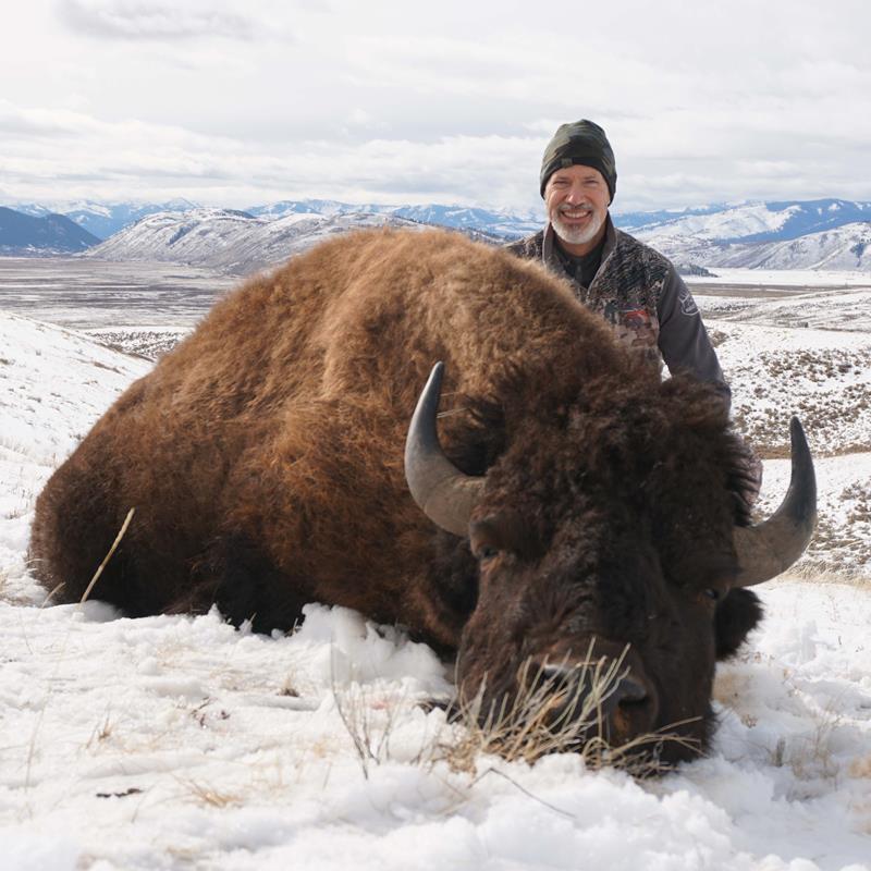 Atop one of the many ridges climbed, I caught a glimpse of three bulls milling around approximately 1,000 yards away. Within 30 minutes, I was picking my way through thigh-high sage, nearing a position I estimated would put me within 200 yards of the bison. Reminding myself to slow down, get steady, and pick a spot, I scanned the landscape below. There was no sign of the bison. I continued heading west up yet another ridge. The words of Logan played back in my mind, “I never quit on a hunt.” I was not going to let this opportunity slip away. Quickening my pace, I crested the ridge. Slightly bent with my hands on my knees and labored breathing, I looked up to see the backs of two bulls just below a knife ridge not more than 200 yards away. Throwing my pack to the ground, I positioned myself prone. There was no hesitation finding the bison in the scope. All I needed him to do was gain two more feet of elevation. Thankfully, my breathing slowed and the crosshairs settled over his enormous shoulder. At the crack of my .300 Win Mag, he crumbled.