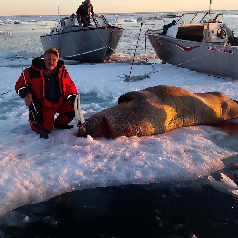 Like a hound hunt for mountain lions, the actual shot is anticlimactic. The real hunt is in the anticipation of and traveling first to Nunavut and then out onto the Arctic Ocean to pursue the Atlantic walrus on the ice flows where they haul-out to digest their diet of deep-water clams.