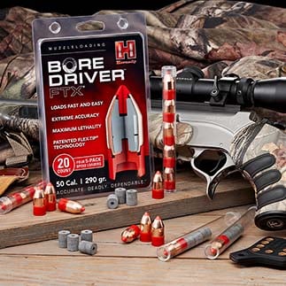 The muzzleloaders use Best of the West’s Express Priming System, which is a patent-pending design that can store and feed three primed inserts from a magazine, much like a centerfire rifle. The non-saboted bullets have an advertised ballistic coefficient of .453 and maintain over 1,000 foot-pounds of energy at 800 yards. The result is dramatically better accuracy at longer distances over traditional muzzleloaders.