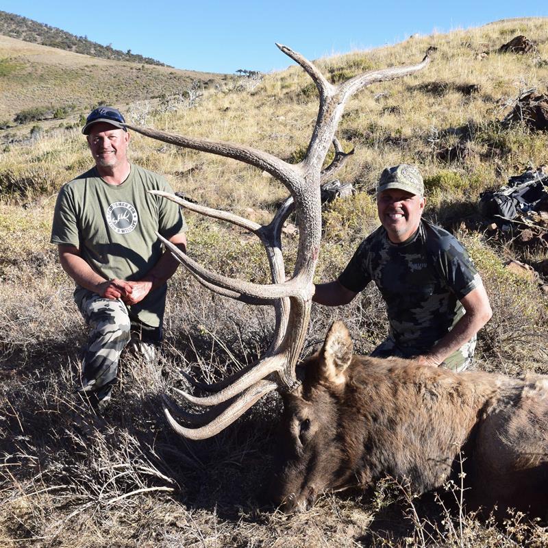 After a long, sleepless night reliving the shot, we returned at first light. As we crested the ridgeline, Wade glassed the spot where the bull had bedded down and echoed the magic words, “Congratulations, Bob!” We hiked down to our beautiful bull. After celebrating and reliving the hunt, pictures were taken. Then, the hard work of caping and quartering the bull began. We had a mile hike out of the basin back to the ATVs. Fortunately for us, Clint Hess, one of White River’s guides, came with us that morning to help with the pack job.