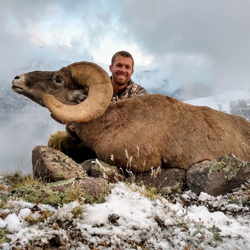 After a couple days of not finding any rams, we ran into an elk hunter who was happy to exchange info on some big bulls we had seen for the location of the missing rams. That night, we hustled over and were able to get glass on them. One of them was what I considered at the very bottom of what I would shoot – full curl, lamb tips, but young. The bonus was that they were in a very huntable spot. We decided to move camp and get set up to go in and kill this ram on opening day.