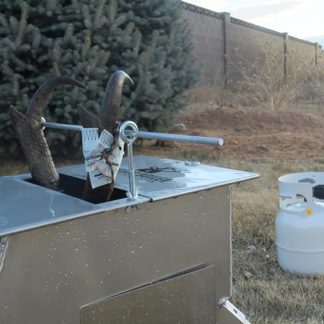 No stone was left unturned when we designed the Bridger Boiler. We hope you see the same value as us with the key design features that make the boiler as user friendly as possible. It fits all big game skulls, including elk, deer, antelope, sheep, bear, etc. and is completely self-contained and transportable. High-quality construction from durable, lightweight, rust- free materials ensures long life. The sloped wall on the front of the boiler prevents large elk from tipping out of the rear of the boiler, and a wide stance of support legs provides a safe, stable footprint. The system includes a completely adjustable antler support bar to maximize skull submersion and minimize antler submersion. There is also an adjustable nose support bar for deer, antelope, and other small skulls to maximize skull submersion and minimize antler/horn submersion.