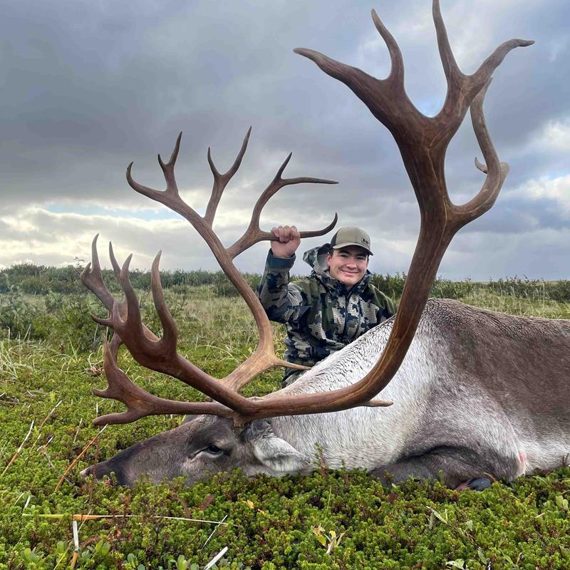 but I am fortunate enough to have those kinds of opportunities since my dad works for Huntin’ Fool. When my dad asked if I wanted to go to Alaska to hunt caribou, I couldn’t decline. I had always wanted to go to Alaska since I was a little boy, and being out there for two weeks in the middle of nowhere sounded so awesome. At 16 years old, I had never flown in an airplane before, and then I found out I was going to have to fly up there alone since my dad was going to be up there already guiding some clients before my hunt. It was a bit nerve-racking but almost peaceful to know that I didn’t have to worry about other people, just myself. It sure was a fun experience as I flew in four planes in two days and got to stay with my dad’s buddy, Justin Shaffer, in Anchorage.I knew where we were going was remote. Cold Bay only has a population of about 50 people and very little business. The coolest part was being in camp as it was about an hour Super Cub flight from town. I have never really enjoyed crowded areas, theme parks, and conventions. I just dislike too many people with so much chaos that it takes away from the experience. Being nowhere near anyone else but the group was a very peaceful feeling and allowed me to enjoy the beauty of uninhabited land, holding only the sheer beauty the world has to offer.After getting into camp, my dad, Jason, and I went on a hike to try and find some caribou. We ended up walking about six miles when we found a small herd of caribou bulls. One was big with crazy wide antlers. We set up, and Jason killed the bull with one well-placed shot. We were so far from camp and the daylight was fading fast, so we decided to take the bull apart but leave the meat, cape, and antlers until the next day. It was already well into the night by the time we finished and started the long hike back to camp. It was a very long walk that seemed to last forever, especially when we were crossing fresh brown bear tracks that were bigger than my size 11 boot tracks. We made it back to camp just after 2 a.m. Dawson, one of the other packers, had dinner ready as we arrived. I had a quick meal and then crashed in my sleeping bag.The next day, Dwayne Magnusson, the outfitter, was able to fly his plane in and pick up the bull, saving us from the hike and allowing us to have a recovery day where we salted the hide and got all our stuff organized.The following day, we hiked another five miles in the opposite direction to find a bull for Dennis, the other hunter in camp. We did find a bigger group of caribou with one great bull. After half a day of stalking the caribou, we finally got in range. We set up, and Dennis killed his bull. We took care of the bull, and with five of us, we were able to pack it back to camp in one trip. The next day, Dwayne flew both Dennis and Jason back to Cold Bay. After watching the two giant bulls get taken by my dad’s clients, I realized I was up next.The next day, we started taking apart camp. Later, my dad and I were flown out to another camp nearby. It was only three miles off the ocean. That night, Dwayne joined us, and we were