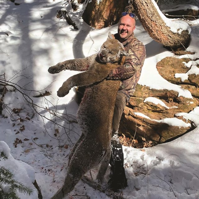 It was a pretty dry winter, but there were just enough good storms to get the dogs out a few times chasing cats. After one of the storms, my buddy and I knew the next day would be a great day to chase. First light hit right as we cut a fresh track, and the dogs just blew up. We turned the pack loose, and all of the dogs took the track. We watched the dogs on the GPS as they chased. It was about a five-mile chase before they treed the cat. We evaluated the GPS and found a road that took us about 600 yards from where the cat was treed. We thought this was going to be the easiest lion hunt in the history of lion hunts. We were wrong.The big tom was treed in the bottom of a nasty canyon. It took us about an hour to navigate our way to the cat. We eventually got to the tree and tied the dogs up. I made an easy 15-yard shot with my old Remington 700 chambered in 25-06. The lion fell out of the tree about 45 feet. We spent the next four hours skinning out the cat and hiking out to the truck. We didn’t have a tape to measure the lion before we packed it out, but I am 6'2" and 230 lbs. to help give perspective. My taxidermist green scored the skull right at 14".