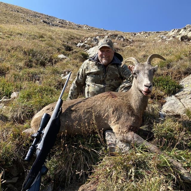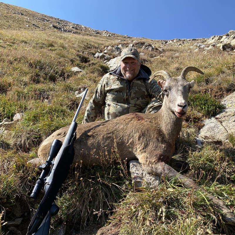 cow moose hunts in Colorado. I know, I know, all you large horn hunters just rolled your eyes, but for the rest of you, dig in and check out opportunity hunts!Matt and I agreed that my best strategy was to apply for both the ewe sheep tags and cow moose tags in Colorado for fall 2021 because I had points that were right on the cusp of drawing in 2020. That way, I would hopefully draw one of them. Boy were we surprised when I drew them both.Matt set us up for both hunts with Todd Clark, who had also taken us on my son’s mountain goat hunt in 2020. The anticipation was awesome! Females or not, I was going to hunt sheep and moose. I wanted to share the fun, so I invited a buddy to come on the sheep hunt, and my son, Ethan, would be able to join me on the second day of the moose hunt.Todd had spent quite a bit of time on the mountain before we got there, so he had a band of 11 ewes and lambs spotted and their habits identified. We showed up on the afternoon before opening day to find no sheep. We spent over two hours looking for them before we finally found them. It was hot, and all 11 of them, along with 6 mountain goats, were all bedded under one monster pine tree in the shade. I know that some people say mountain goats and sheep don’t like to be together, but we saw them together every day. As the day ended, they all grazed out into their regular turf.Opening morning, we assumed our spot on the opposite side of the valley and discovered the sheep more than three-quarters of a mile from where we had put them to bed. Over the next seven hours, we watched those sheep and strategized about how we would get to them. They bedded up three different times where we decided we just couldn’t get to them without getting busted. Then the fourth time they bedded, we thought they were on a shelf back far enough that we could approach from below. When we got below them, we saw the lead ewe bedded 2,000 feet straight above us in the perfect place to see the whole valley with us in plain sight. After about 30 minutes of waiting, that lead ewe and half of the band suddenly got up and moved into a gully to pause at a spring. Todd looked at me and said, “I’ll bet the other half will do the same thing. Think we can beat them there?”We hauled it straight up the hill as fast as this flatlander could go. Just as I got to the last tree before tundra, Todd was motioning that they were coming. I had to let three mountain goats walk through before the sheep, but sure enough, here they came. Todd ranged the lead ewe at 401, but with the angle, I was to shoot it at 350. After the shot, she was down. It was so steep that it took us another 30 minutes just to get to her. And yes, even a ewe can give you Ovis Pyrexia (sheep fever).Although my moose hunt started on a Friday, I told Todd I was probably going to pass if we got a chance on the first day because I really wanted my son to be with me. The first day, we saw three moose. I passed on a 1 1/2-year-old cow at 45 yards, we saw a monster cow that was about 150 yards on private ground, and we saw a nice bull. Ethan arrived that night, and I was ready to go. It took us until 2 p.m. the next day to see our first moose. We were above 12,000 feet in a bowl, and there wasn’t a tree in sight. I thought Todd was crazy and there was no way there would be a moose up there. However, a bull finally stood up out of the tundra at 800 yards above us, and his cow stood up next. I got set up, but as they skirted the top of the bowl above us, Todd was calling yardages. 565. 525. 501. I just wasn’t comfortable at that distance, so I passed. Todd reminded me that was two passes in two days.Toward the end of the day, we found a nice marshy spot to set up and a nice cow walked out in the last legal minutes of light. Todd and I were talking and agreed it was a cow, so I pulled the trigger. Imagine our surprise when we got up there to find it was a bull with no horns. The bull was the size of an adult cow. It had tiny nubbins for horns, less than 1" each. The tag was actually for an “antlerless moose,” so this was completely legal and verified at check-in with CDOW. We had Ethan along with Todd’s son, Dillon, to carry quarters out, which was a great idea because they were heavy. Ethan and I got to experience a high-country hunt together.In a span of five weeks, I got to go both sheep and moose hunting and be successful with each. Thanks a million to Matt for the coaching and Todd for the excellent guiding. Thanks to my bride for being so patient. And thanks to Huntin’ Fool for getting me in the position to experience these incredible hunts.