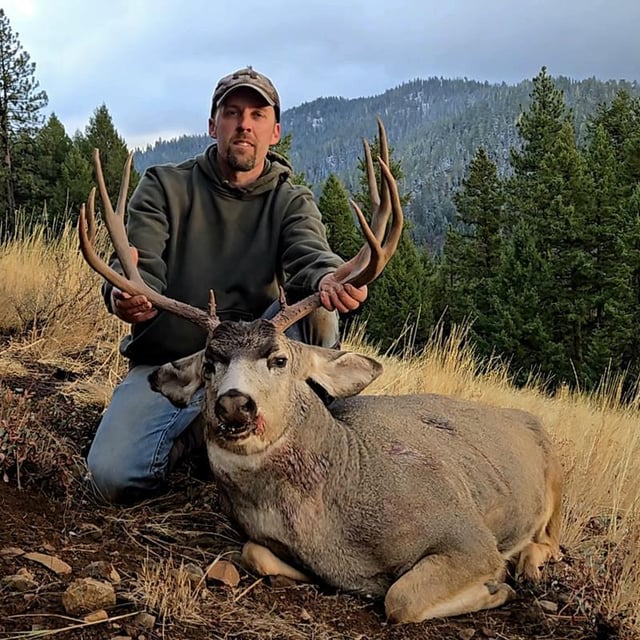 I spent opening weekend with the family at our wall tent camp. My wife, Julie, is an amazing cook, and our three kids, Kolton, Makayla, and Steven, looked forward to this trip all year. We were glad my father-in-law, Joe, could make it as well. Opening day, we made a play on a big buck, but like old bucks seem to do, he disappeared into the thick timber, never to be seen again. The following morning, I saw a buck bed down in an area I knew well. Oregon allows youth to mentor off an adult’s tag, so off Kolton and I went. Minutes before we got to the deer, another hunter bumped him. As we left, we repeatedly stopped and glassed. “Buck,” I said! About 350 yards behind us was a nice 20" 3x4. Kolton watched him in the scope and decided he needed another year. I was surprised at his self control as he would have to head back to school the next day.