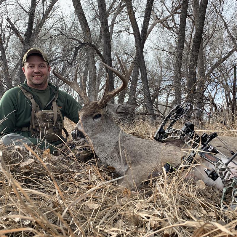 I was excited and anxious to get an up close and personal look at the buck. I began to hear grunting coming towards me but was unable to get eyes on the buck. As I was scanning, I was able to see the doe about 30 yards off to my west, afraid the buck may push her through without me being able to get a clear shooting window. As I hit my rattle bag, I instantly heard the buck raking a tree from where the doe had appeared moments before. In a blur, the buck got behind the doe and pushed her around a bush to my north. The doe stepped out at only 15 yards. When she turned her head back to look for the buck, I eased my bow to full draw. I settled my 30-yard pin on his vitals and let my body relax as I was slowly pulling back. In slow motion, I heard the click of my release let go as my bow went off. The buck whirled and was gone in a flash, but not before I heard the reassuring thwack of my arrow connecting. With it all happening so fast and being so close, I was never able to see exactly where my arrow had entered the buck.