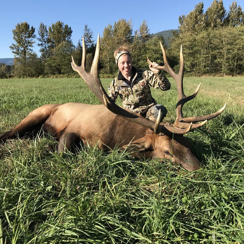I couldn’t believe we had hunted all this time and within 400 yards of the truck was this bull. I quickly got into the prone position, acquired the bull, and waited for Dad to give me the green light. It seemed like an eternity because the bull was intermingled with his cows. Dad kept saying, “No shot, no shot.” Then I heard the word, “Clear.” I squeezed the trigger, feeling confident about the shot, and exploded with excitement when Dad said, “He’s down.”