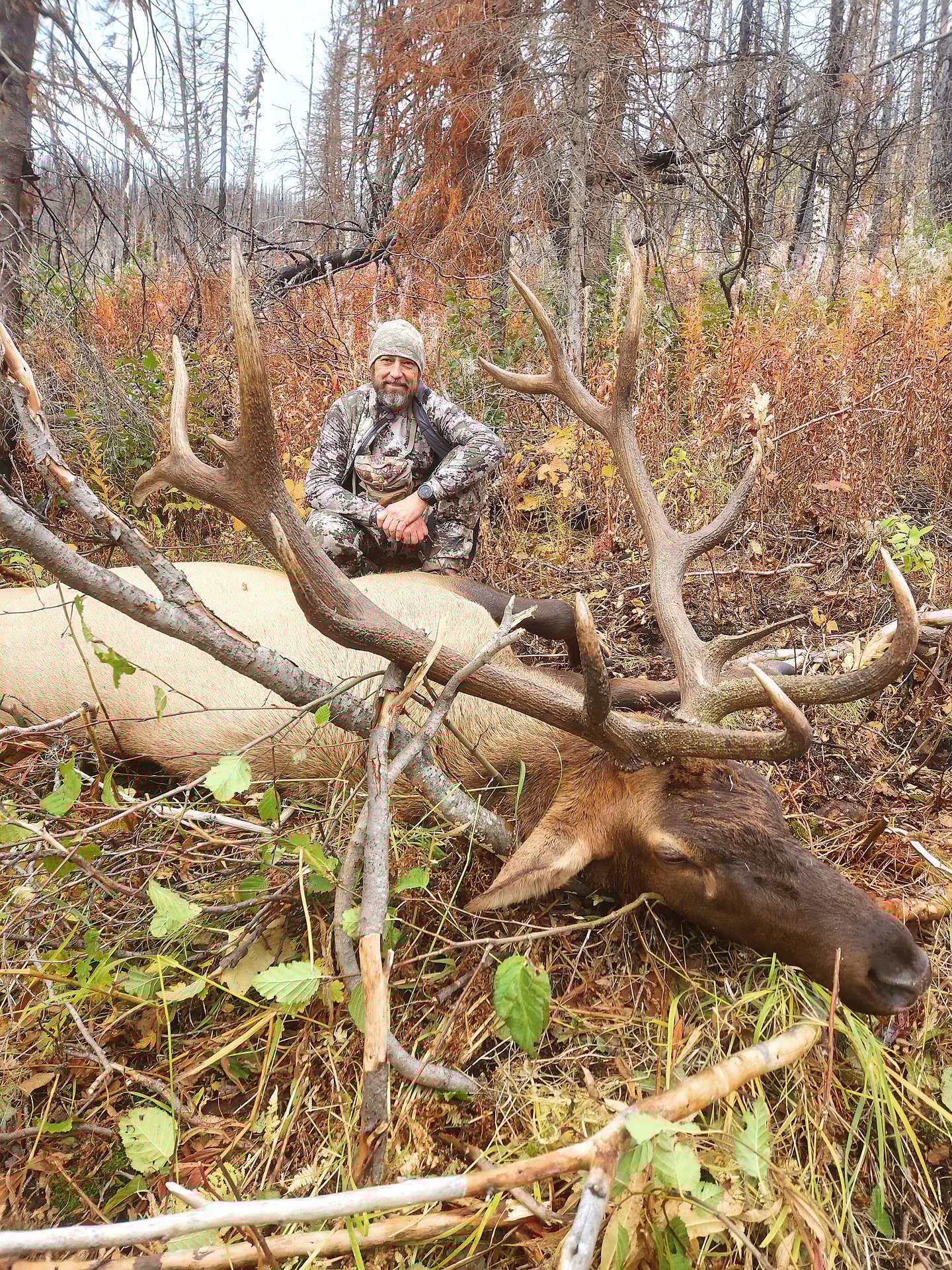 I had no idea what this bull looked like. I had only been able to briefly see one obscured antler. When I finally did see him, I was ecstatic! I had always dreamed of taking a large, dar- antlered British Columbia elk since I was a child, and he was there right in front of me.