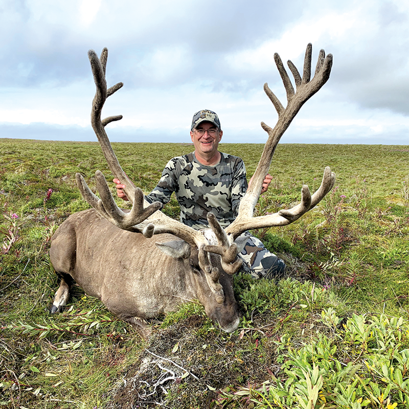 It took us several hours to get the bull cleaned up and packed down to a lake that was a third of a mile away. The meat, cape, and horns were packed down and would be picked up by Rod in the morning. It was now 9:00 p.m., and we headed for the barn. By 10:00 p.m., the headlamps came out and we received a scare when we came across a bedded caribou in the dark. All we saw were his glowing eyes at first, and we thought it was a bear. That’ll get your adrenaline going.