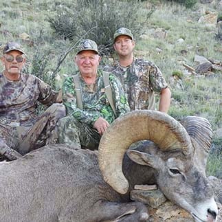We waited for Colby and Gary to get to us and started up the hill. After a very steep, rocky climb, I put my hands on my ram. A sense of accomplishment ran through me, and I thanked God for my success. I filled out my tag, and we took pictures. Then, Kirk, Spencer, and Colby skinned the ram. The other six rams came within 100 yards to watch us. Colby, Spencer, and Gary packed it all down to the truck.