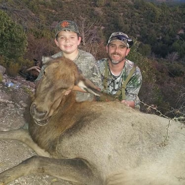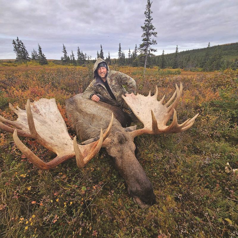 for a 10-day hunt. There were two other groups in camp that were both on mixed bag 20-day hunts. They said they had only hunted about half the days due to weather. The Fithians have a great camp setup with a main lodge for eating and then individual cabins with wood stoves. They use four-wheelers to get around on trails established over the years. The main way to hunt seems to be getting up high and glassing and seeing what’s out there.The weather, trees, and animals all seemed to be a couple of weeks behind to me. The leaves hadn’t changed like I would have expected, and many of the moose we saw still had some velvet on their horns and looked bright white, having not polished them up yet. There wasn’t any rut activity and very little movement, making it extra difficult to find moose. Nonetheless, our patience paid off as we eventually found a big “shooter” moose the first day on the other side of the river drainage.The next day, we got up high but never located him. However, we did find another shooter just under the ridge where we were the day before. The third day, we went looking for him, but again, we were unable to locate him, so we got back up on our glassing position. Eventually, we spotted another great moose. I decided to take my own spotting scope and was able to get some good pictures on my phone to really assess how big these moose were. This one seemed huge, but it was in a terrible position for retrieval. It was big enough that we considered going after it right then and spending the night in the bush, but we decided to take our chances in the morning.The next morning, we left extra early and got up high again to locate him. To our fortune, he had moved across a river and a mile closer to us. We stalked down a steep ridge and got in close above him. He was with another smaller bull and 570 yards from the ridge. I could make that shot, but if I could get closer, why not? We worked around the backside of the ridge and popped out in a saddle. It was 450 yards downhill to the moose, and he had just bedded. Since we knew it would be a long day once he was down, we decided it would be best to take the shot even though it was not ideal. I got my bipod set up, dialed in my scope, steadied for the shot, and squeezed. I heard a click! That had never happened to me. Now I was wondering if something was wrong with the firing pin. I jacked in another bullet, calmed myself, and pulled the trigger. Boom! It was a hit, but he was up. I fired several more times until he was down and not moving. We did it!Working our way down to the bull took some time with all the alders, bogs, and tundra. When we arrived, I was in shock and awe of his size. He looked huge! Cody was interested in knowing the width and pulled out his tape. It was only a six-foot tape, and it ran out! This bull was massive at just under 74". His body looked massive, too. He was truly a majestic giant of a bull. Cody was amazing and got him quartered and bagged within a few hours.The next day, Cody was able to land a plane about 800 yards away. He chopped a trail through the bush of alders and willows, and we hauled out the meat about halfway to the open tundra. The next day, Cody and another guide took it all up to the landing area, and the following day, they flew it back in several trips to camp.This was truly an amazing experience, and I felt so fortunate to be able to hunt a true monarch like this. Twenty years later, I could finally say, “This one’s for you, Pops!”