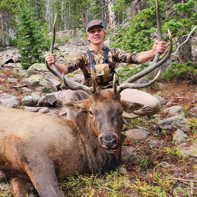I joined his side, and there, another 30 yards ahead, was a mature 5x5 bull lying dead on the hillside. We closed the distance and took a few moments to give our thanks and gratitude to the bull for the life he had just given us and the meat that he would be providing us for the next year. This may not have been a trophy-sized, Boone and Crockett Rocky Mountain elk, but it was a mature, branch-antlered bull and a trophy for this 16-year-old youth hunter.
