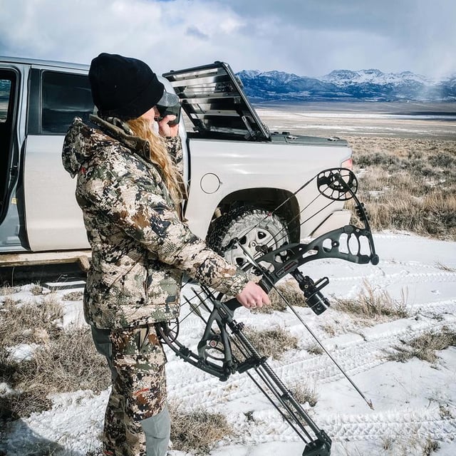 I’m a huge fan of solid colors for hunting, so I was drawn to this line that had solid options in just about every piece. I’ve been interested in trying merino wool for years, and First Lite was one of the first companies in the space to make a big push with merino wool. They were also one of the early adopters of a fully outfitted women’s line. I like that I can sweat nonstop in their tops and still be odorless. I would suggest going up a size in nearly any top of theirs because they fit extremely snug for my liking. I typically wear a small, but the Kiln hoody was more of a base layer fit in a small, and the Sawtooth Hybrid jacket fit perfect in a medium, even though I’d typically order a small. While the Alturas Guide pants are too short for me, I do like the elastic waistband on the backside that prevents the pant gap that women complain about, as well as the pocket placement and sizing on them. Due to the length being over 2" too short, going without gaiters wasn’t an option for me. Speaking of, I absolutely love the way their short Traverse gaiters hug your foot and ankle area. It’s a nice alternative to the heavy-duty tall gaiters that most brands offer. While I don’t typically get excited about a glove, both pairs they sent are my new favorite gloves I’ve ever put on. I’ve always cut the fingers off my thinner gloves because I can’t stand shooting a bow without feeling the trigger on my skin, so I feel like the Talus fingerless gloves were truly made for me.