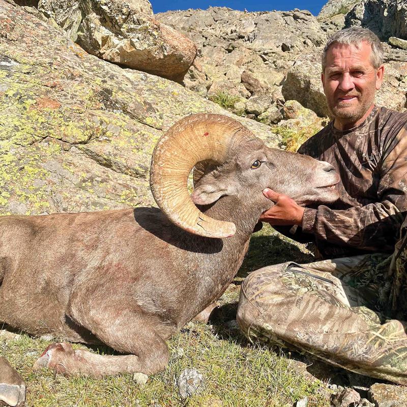 Rocky Mountain bighorn sheep had been a dream of mine since childhood over 40 years ago, so much so that when asked, “What is your dream vacation?” my answer had always been, “A bighorn sheep hunt.”When 2023 applications were due, I was coming to terms with the reality that my dream likely would not happen and was about to give up the pursuit of the sheep. After applying for over 15 years in multiple states and building several preference points, the reality was that the draw odds have continually been getting less and continue to become more and more expensive. However, with my wife’s encouragement, I completed the applications. I had such low confidence in drawing a tag that I didn’t bother checking the status on the draw date. When driving down the road one day and a credit card charge alert came across on my phone for the amount of $2,554.04, I casually glanced at it. With that amount, I presumed my wife had booked a vacation. When I arrived where I was driving, I looked closer to see where we were going for vacation and noticed the charge was from State of Colorado Game and Fish. Initially, I was leery and assumed it must be a fraud charge, so I logged into my CO CPW account to check the draw status of my sheep application. It was April 18th, and my status was PENDING. The next hour before the CPW office opened, I spent looking at the sheep application and verifying the dollar amount for a non-resident sheep license, which was the exact amount of the credit card charge. I was getting excited.It was finally time to make the phone call. The staff member verified that my application status was still in pending status and stated the computer would have a delay, and the credit card charges would hit before the status changed to SUCCESSFUL. They also told me that if I were successful, I would receive an email shortly. At 11:13 a.m., the email arrived. Immediately, I took a screenshot of the email and sent it to my wife. Within minutes, she called, elated about my news. My next step was contacting Huntin’ Fool to start the process of planning and choosing an outfitter for the job. With draw odds of less than 1%, I was feeling lucky and bought a Powerball ticket. I did not win the Powerball, but I did win my lottery dream. I was going bighorn sheep hunting!My lifestyle changed that day. Like my previous hunts, it was all about the planning and excitement of getting ready for the experience-of-a-lifetime. Being a flatlander from Minnesota, I knew I had a lot of work to do both physically and mentally – new diet, exercise bike, riding bike, and hiking. I also purchased a weighted training vest and started wearing it to work and in other daily tasks. I am a roof inspector, so I wore it while climbing ladders, walking on roofs, loading shingles, as well as push mowing the lawn and hiking on hills around the lake. I was wearing it 10 hours a day, 5 days a week and gradually adding more weight every other week until it was 50 lbs. Even when people looked at me funny, I knew the mountain was going to be tough on me, and I wanted to do everything I could to be as prepared as possible.The four months flew by, and before I knew it, I was packing for my dream vacation. The outfitter I chose was Compass West Outfitters. Chris was fantastic to deal with, and my guides, Dalton and Zach, were going to help me. In mid-August, I received a message from Dalton with a photo of a nice ram and a text, “It’ll be a physically challenging hunt but very rewarding.” That statement got me extremely excited, yet at the same time, I was concerned about my physical abilities to conquer the mountain. In my mind, I knew I had trained extremely hard.Dalton and Zach headed up the mountain a couple of days before I arrived to try and relocate the ram, and it was decided that depending on where he was, that would determine what drainage trail I would hike up. I arrived several days before the season opened so I could acclimate to the elevation and met Dalton. We checked our packs and started hiking up the mountain. It was very intimidating, very steep, rugged, androcky. As I looked up at where the bighorn sheep resided, I thought, “How am I going to make it all the way up there?” Dalton must have sensed my uncertainties and told me, “One step at a time and we will get there.”After hours of hiking, we made it to our first camping spot about two-thirds of the way up. The following morning, we were to meet Zach at a higher glassing point and try to locate the rams. A group of four had been spotted over the past month, and we were going to make a game plan for how we were going to get to them and make my dream come true.We spent the first couple of days glassing and searching. On day three, a group of three rams were spotted all the way across on top of the other side, approximately a 10-hour hike away, so we packed up camp and started to make our way up and over. Our only stop being to fill enough water for a couple of days as there was none where we were headed. We were about 300 yards from the top when a legal ram appeared above us, standing at the ridgeline, so we hurried to get into a shooting position and waited to see if the bigger ram would follow and show himself. The smaller ram came within 90 yards of us and then headed away. We waited an hour but no bigger ram followed. We continued our trek to the top and spent time behind the glass with no other rams to be found. We continued hiking for another few hours and reached an area to set up camp just before dark.The following morning, Dalton and Zach headed to higher ground to glass and I stayed close to camp. Mid-morning, Dalton returned with news that Zach had spotted the bigger ram. He was a three to four-hour hike away, so we headed out and up. This was where I had to really dig deep. When I spotted Zach sitting at the top of the mountain behind his spotting scope, I started to get nervous and excited. We crawled up slowly and observed two