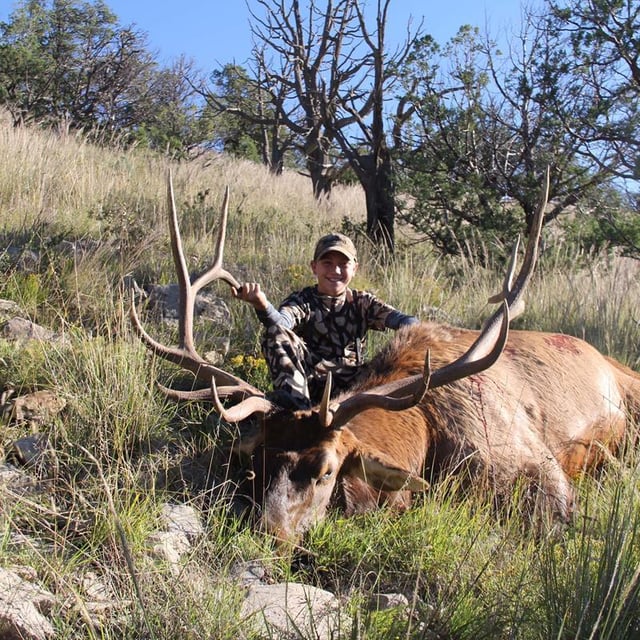 Hayden was fortunate enough to draw a coveted youth elk tag in New Mexico. He drew this tag when he was 7 years old and took a nice bull. He knew the potential the unit provided and was willing to pass on bulls until he found the one he wanted. He passed on several bulls on opening morning until he decided to take this great bull. It green scored 340", and Hayden and the whole family could not have been more proud. Hayden also took a muzzleloader antelope in New Mexico in 2017.