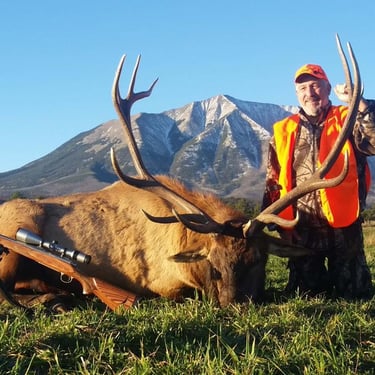 On Friday, September 27th at approximately 4:00 p.m. after five days of hiking/climbing and hunting, laying mostly prone shooting off his backpack and at a distance of 350 yards across a deep, steep, rocky canyon, Kody fulfilled his 2019