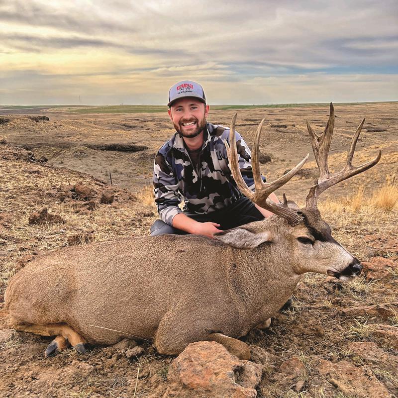 season with added responsibilities for us. Going into the season, I was lucky enough to draw a sheep ewe tag in Washington and then also drew a multi-season tag that allowed me to hunt deer with all three weapon types. My best friend and hunting partner, Tanner, also had a multi-season tag, so we got to work looking for bucks to chase during archery season. I am typically not the type of guy to hold out much for bigger deer as generally where we hunt there aren’t very many bigger bucks. We found a bachelor group of about 15 bucks all hanging together that would feed in the farm fields and then bed out in the sagebrush on a daily routine. We chased those bucks all over the countryside, but for some reason or another, we were never able to close the deal.Tanner also had a newborn baby at home, and for muzzleloader season, we were only going to have a couple of days to hunt. Our days were pretty uneventful as we had really messed up the bucks’ patterns during archery season. After work one day, I decided to go out with a different friend, Nick, to look for bucks in a different area than where we had been hunting. We did not see much, but right at last light, we did find a buck on neighboring property that was as big of a 2-point with eyeguards as I had seen before. He was right next to a property we had permission to hunt on that had a great bedding draw in it, so we knew where he would be the next morning. I hiked into the area, and as I was creeping over the hilltop to get a view of the big draw, the buck jumped up and ran up the hill about 30 yards and stopped. I pulled up the muzzleloader, settled, and shot. When the smoke cleared, the buck was running off unharmed. I had shot right over his back. I was deflated. I had some pressure from the wife at home with our daughter that I really needed to get a buck so I could be at home more, and when I finally had an opportunity, I blew it. It was at this point I told Tanner that as long as we kept working at it and making smart decisions, it would all come together.Once muzzleloader season was over, I had my ewe hunt to look forward to. Opening day was the same as opening day for rifle deer season, so the plan was to make a quick day trip to find a ewe and then get back home to chase deer. Tanner, my dad, and I hit the road the night before sheep season and were able to hike up a canyon and find a ewe and a ram all the way at the head. They did not give us much of an opportunity before they ran back into the bottom and never came back out. I had hunted some of this country before, and this particular canyon always held sheep, but this year, there were hardly any in the area.The next morning, we decided to head further into the unit to find a different area that might hold more sheep. We were on the highway headed up into new country when Tanner looked out the window and spotted a herd of 20-30 sheep about 100 yards off the road. We kept driving and parked at the nearest turnout and worked our way back to the sheep. We ended up bumping them up and over that ridge, so we tried to parallel them to keep on the herd. As we were doing this, we started glassing more sheep up, including a pretty nice ram. Once the sheep all settled down, we got down on the pack, and once we verified that I was looking at a good ewe, I took the shot and we had a sheep down! We got up to the sheep and celebrated, took some photos, and packed her out. I hope to return to this country one day with a ram tag in my pocket.With the sheep hunt taken care of, we headed back out in search of some of the bucks we had chased during archery and muzzleloader season. My wife made sure to remind me that I had been hunting maybe a little too much that year and that it was time to harvest a buck and be at home.With that in my head, I decided to shoot the first legal buck I found that day. Deer sightings were a little slow that morning, but we were able to get a buck with Tanner’s wife, Carley, and she was ecstatic! After that, we had found one legal buck that I knew I should go after, but he happened to be one of the smallest and youngest bucks around the area. I really wasn’t ready to be done hunting yet, even though my wife’s patience was wearing thin.About the time I had decided to just try and kill that deer, Tanner piped up, “I found another one all by himself out in the cliffs. The heat waves are terrible, but I can see antlers from here, so he has to be at least a legal buck.” That solved the problem for me! We headed off after this buck knowing there was no way he was as small and young as the buck we were leaving behind. We came around the final canyon that would lead us to where we wanted to pop over and find the buck and started to slow down. We peeked over the hilltop to locate the buck and were very surprised to see this was not just another buck. He was a great mature buck, which was pretty rare in this area. We backed up, changed our game plan a little, and worked over the cliff edge about 130 yards from where he was bedded. As old, wise bucks do, he was onto us and jumped up and began to work out of the cliff bottom. Tanner knew this area extremely well and said, “Just wait. He is going to pop out on top of the cliff just to the right of where he was bedded.” Sure enough, he followed that path and stopped to look back at us. We were ready, and I was able to get off a good shot and put him down. We still were not quite sure what we had, so we headed over to the buck and were shocked when we found a massive, bladed old buck with an awesome set of double eyeguards.It could not have worked out better for us in the long run. We continued to hunt the right way and made good decisions, and it paid off for us big time. All it took was some good luck and being in the right place at the right time. I’d rather be lucky than good! I can’t thank my wife, Morgan, Tanner, and Carley enough for all the help and time they have given me to chase my passions and to m