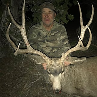 I knelt down and took my rifle off my backpack and got ready for a shot, only I wouldn’t have the vitals in sight with the hill between us without letting myself be seen. I looked through my binos and saw five good-sized bulls, but one of them was huge. I slowly stood up with my rifle up and double checked to make sure I was on the biggest bull as they kept changing position. I squeezed the trigger, and he immediately dropped while the other four ran about 40 yards and then stopped and looked back at me. After I decided they were never going to leave, I started to walk up to my bull and he just seemed to get bigger the closer I got. I could not believe my luck.