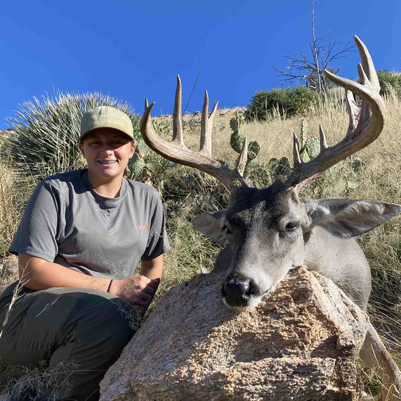 At 14 years old, she endured a hike that most adults wouldn’t even dream of. Next, this would not have been possible without Uncle Willie, aka Joseph William, spotting for us. We are so grateful for your help! We love and appreciate you!When Tristin drew a youth any antlered deer tag in Southern Arizona, I told her we could try and target a specific jumbo Coues but it would require a ton of work and some help from Uncle Willie as a spotter walking us in because of the terrain. I told her we could try it if she wanted, but if she decided to pass and hunt other areas, that would be fine too. As the hunt dates grew closer, we began discussing it and she said she wanted to try and do it, but she only wanted to dedicate one day because of the difficulty.Uncle Willie called as he was heading home from helping a friend on a mule deer hunt in Wyoming and said he could make Sunday work if Tristin was up for the challenge. After a brief discussion, plans were set for the next morning.We hit the hills very early Sunday morning at 3:30 a.m. and started the first half of the 7.5-mile round-trip hike. She blasted through the 1,600 vertical foot climb, and three hours later, we were in position at gray light. Our legs were like Jello. Shortly thereafter, Joe called us with news that he had the jumbo spotted not far from us and feeding in our direction. I located him shortly thereafter and got Tristin set up on a large boulder for the 275-yard shot. She was shaking with nerves, and we talked through the shot as she steadied the rifle. In a matter of just a few minutes, the deer fed into an opening and Tristin made an awesome shot with the Western Precision rifle built by Brent Jacob. We were elated! As we approached the deer, he kept getting bigger and bigger. I couldn’t believe my eyes, and the smile on her face was priceless.With the help of Uncle Willie, Tristin had just killed the Coues-of-a-lifetime. There were a lot of hugs, high fives, and photos before beginning the second half of the hike with a full load as we descended the mountain.I am so proud of Tristin for being willing to entertain the idea of such a physical hunt and then for doing it without complaint. Simply amazing! Thank you again to Uncle Willie for helping us! We could not have done it without him. The deer scored 123 7/8" gross SCI and 116” typical SCI.