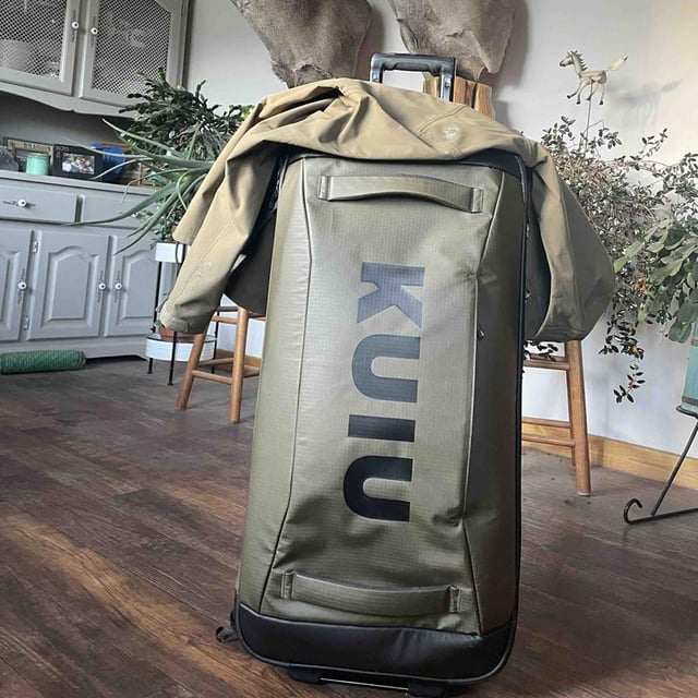 “When KUIU announced they were coming out with a 6500 Waypoint Roller, I couldn’t wait to get my hands on it. The timing was perfect as my old Walmart special roller luggage was on its last leg and not going to make another trip through an airport. As we all know, airports are extremely tough on luggage, and if it’s hunting related, some airport employees can be extra tough on it. The 6500 Waypoint defiantly passed the toughness test. To simulate airport abuse, I put some towels plus 75 pounds of weights in the Waypoint and then proceeded to flop and roll it around the house. Then I threw it on the flatbed of my truck and drove several miles on a winding gravel road, letting it slide around. Other than a couple of small scuff marks, it came out looking like a champ with everything inside still in place.