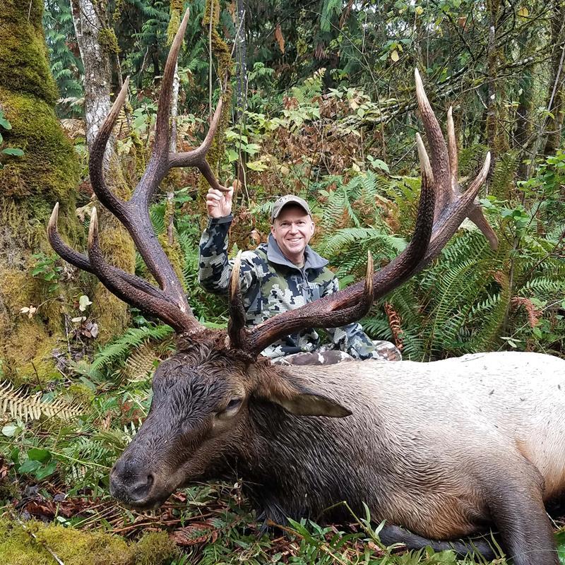 I made the short trip back home to get my wife and daughter. The blood trail was present, but there wasn’t an overwhelming amount of it. I decided that due to the noise I would make pushing through the brush, I should first circle around the thick patch the bull went through and see if I could locate him or where he went by using the game trail. I had gone about 40 yards when I saw his tan hide hidden in the salmonberry bushes. As I gripped the heavy antlers, the failures of the past melted away, they now felt simply like lessons learned.