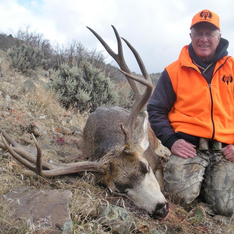 Utah mule deer hunt in October. I immediately gave Steve a call to get the details as I had always dreamed of going on a quality mule deer hunt.I learned that the hunt was on a private ranch enrolled in Utah’s CWMU program. The hunt became available to me because the hunter who had originally signed up had to cancel because he was adversely affected by Hurricane Harvey. After discussing the hunt further with Steve, I decided to book it. One hunter’s bad luck turned into my good luck.Steve’s Outdoor Adventures put me in contact with R&K Hunting Company, which was going to conduct the hunt. R&K would provide a fully-guided and outfitted hunt. In mid-October, I was notified by them that I had the option to switch my hunting dates from the end of October to the first part of November. I immediately accepted the option since this would be closer to the rut. My luck was getting better, and I was getting even more excited about the opportunity.On November 3rd, I started my drive from Wisconsin and headed west by myself. Except for some high wind gusts in Wyoming, the drive was uneventful and I arrived in Utah the next day and got settled in. The accommodations were excellent. I met my guide, Blake Price, and we discussed the details of the hunt. We would get up before daylight, have breakfast, and then drive in his pickup to the hunting area. From there, we would travel in his UTV on the mountain roads and we would spot and stalk.The ranch was 17,000 mountainous acres, and it turned out that I would be the only one hunting mule deer on the property as another hunter that was supposed to be there never showed up. The elevation varied from about 7,000 to 9,000 feet, and there were a couple inches of snow at the higher elevations. The cover consisted mainly of sage, oak, and snowberry brush with enough openings that made glassing ideal. There had not been any livestock on the property for many years, which meant there was ample food for the wildlife.I was greeted on opening morning by a light rain in the lower elevations, and it was snowing higher up. That really did not bother me too much as I had hunted in adverse weather conditions many times in the past, plus, I was pretty hyped up. On the drive to the ranch in the early morning light, I could see many deer in the fields along the road. I thought that this was going to be fun. When we started up the mountain in the UTV, we immediately began to see deer. We would stop and look them over with the telescope and then move on to the next spot. I was amazed at Blake’s keen eyes and his ability to spot deer in the brush a long way off. The first morning, I saw over 50 deer. There were at least a dozen or so bucks with a couple of nice 4x4 deer but not quite the size I was looking for, especially on the first day. We spent midday having lunch and telling stories of previous hunts.The afternoon hunt of the first day and the morning of the second day were pretty much the same as the first morning. We saw a lot of deer and two impressive mature bucks that were tempting to me, but again, I decided to pass. I soon realized that it was going to be very difficult trying to decide on which buck I should take.While we were having lunch on the second day, Blake received a call from Paul, his friend and fellow guide. After hanging up the phone, Blake excitedly said, “Get your boots on.”I quickly got ready and jumped in the truck. On the drive to the ranch, he explained to me that Paul was guiding some cow elk hunters on the property and he had spotted a big 4x6 buck that he thought we should come and take a look at. We arrived at the ranch and found Paul. It was snowing pretty hard, but when we spotted the buck, I knew this was the one. He was tending some does and trying to keep a smaller buck at bay. We hiked up the mountain to get downwind and find a good shooting position. With the snow coming down and the deer moving in and out of the brush, it was a little difficult to get a clear shot. Finally, the opportunity presented itself. Blake set up the shooting sticks, and with one shot from my 7mm Mag, the deer was down.I would like to thank Steve West and the crew at Steve’s Outdoor Adventures and Brett Baum and Blake Price of R&K Hunting Co. for their excellent service and for making the hunt fun and exciting. Most importantly, I need to thank my wife, Jane, for encouraging and supporting me in my passions – hunting and fishing.