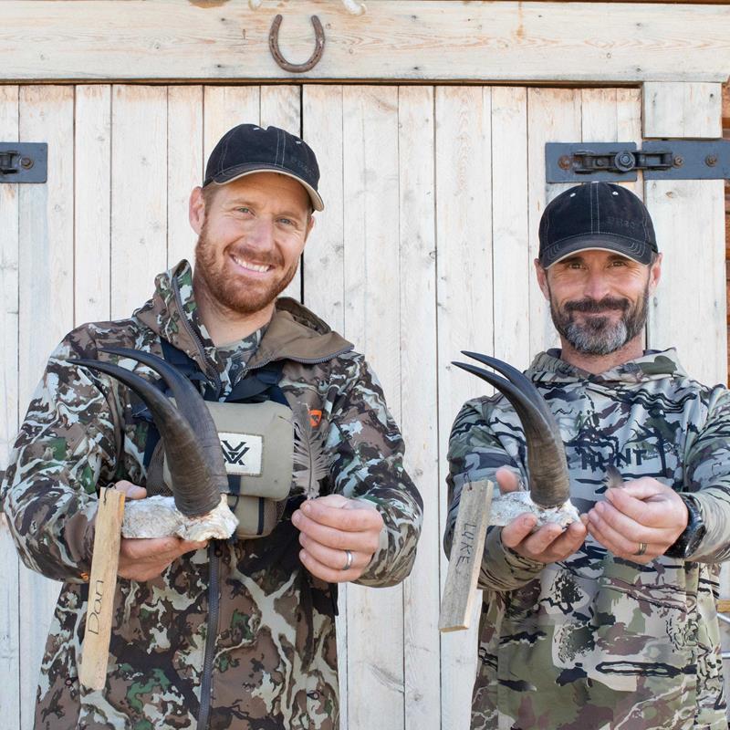 The billy entered the safe zone, and Luke fired. The animal lurched around, making an obvious attempt to clear the edge of the cliff. Luke’s rifle barked again, anchoring the animal before he could dive into oblivion. Retrieving the goat was hair-raising, but the cliff made for quintessential harvest photos. Luke took a few moments to sit on the ledge and absorb the success, one hand on the goat and one hand holding his feather.