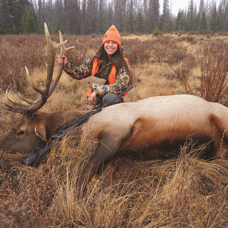 We crested the last rise into the park. It was two minutes to 8 a.m., and for the first time in the wild, I heard what I’d been told were the most beautiful sounds of the high country – the bugles of rutting bulls. My husband ahead of me on horseback didn’t hear them yet. As we broke into the park, he was the first one to spot the few cows disappearing into the black timber across the brush-covered flat. In disbelief, we quickly handed off our riding horses to Tyrell’s father and grabbed our packs and the 7 Mag. We followed the now invisible herd by the bugles of the bulls.