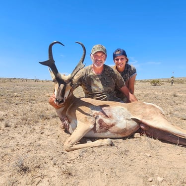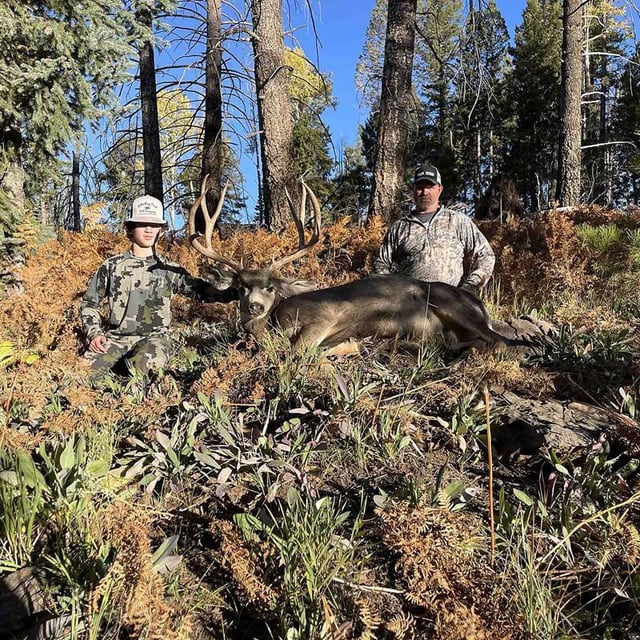 fun but also very hard hunt.It took us about 24 hours to drive down there, but it was so worth it. We hunted for about three days because our truck broke down. The first couple of days, we went with only seeing a few small bucks but a lot of does. However, our last morning, we decided to hit it hard. We sat there until daylight in a little valley, waiting for them to pop out. It was probably a little after daylight when we saw a really nice 4-point in a group of about seven other bucks. Once we found the one I wanted, we laid the smack down on it. When we finally got to it, I was so shocked that it was a lot bigger than we thought. It was a 5x4.What an awesome time, and I was so happy to get my first mule deer. We got him scored, and he was 186".