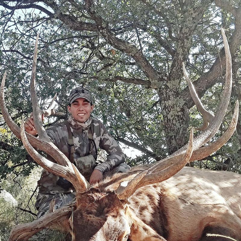 As soon as they were out of sight, I hustled to where they had dropped off and spotted the bull feeding up a small header that led into a big timbered canyon where he was likely going to bed. The header came to a small saddle before it dropped into the bigger canyon, and I figured he would cross there. I wasted no time as I sprinted across the bottom and up the hill in an attempt to beat him to the saddle. I quickly took cover next to a small spruce and ranged everything in the saddle. No more than a minute passed and I heard the footsteps of an elk coming up from out of the header. Seconds later, I saw the tips of his antlers. He was going to feed within 30 yards of me. My heart was pounding as I got ready to shoot. With the wind in my face and the sun at my back, I knew the conditions were perfect. I just had to be patient and wait for him to present me with a good shot. He moved up into the saddle at less than 30 yards and stopped to feed on a small spruce, but he was facing my direction, not allowing me to draw. As soon as he stepped behind the spruce, I drew my PSE, and as he stepped out on the other side, I released the arrow. The shot was quartering away, and I heard the thwack of the arrow as it sank into his vitals. The bull turned to run, and I could see the arrow sticking halfway out behind his front shoulder. He ran only 50 yards before bedding under a pinyon, and after waiting him out for 45 minutes, I had my first New Mexico archery bull.