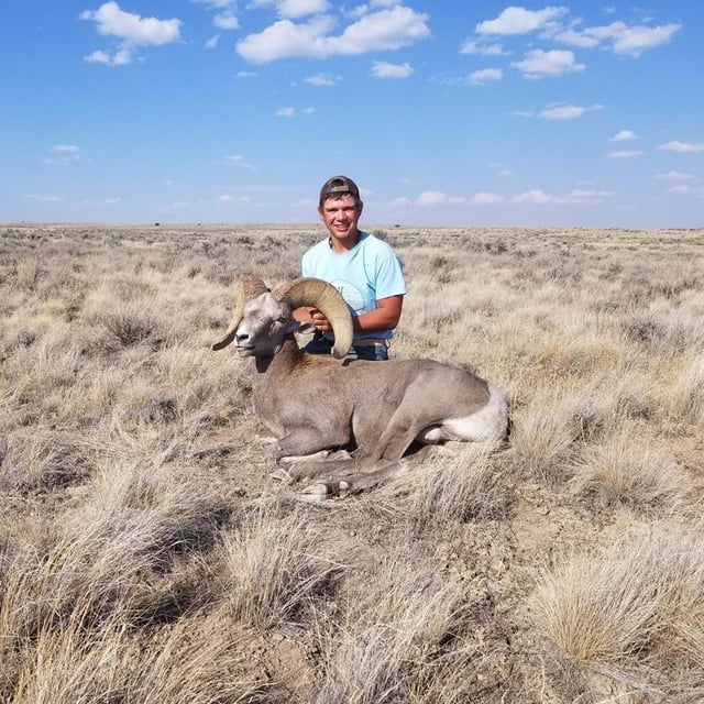 We made it home the next day to find that the ram scored 163", which was awesome for a California bighorn. He was only 5 1/2-years-old with 15" bases and a 33 1/2" curl. I was very happy with him and would like to thank my Grandma Chris for the tag, Troy Zeigler for helping with the coyote derby, Scott Farr for the amazingly accurate rifle, and my parents for taking me hunting and helping take care of chores when I was gone.