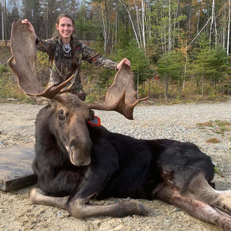 New Hampshire moose tag, which took her 21 years. Everyone in my family had been moose hunting before except me, so when we drew that tag, it was my time to shine. My dad took multiple trips up there to scout for moose. He wanted to make sure I had a hunt-of-a-lifetime. By pure luck, my dad met a young couple who had private land in our hunting unit. They gave us permission to scout and hunt their land. Soon, the landowners were sending us updates about moose that kept coming out into his cut, and he would send us videos showing a nice bull that kept returning.