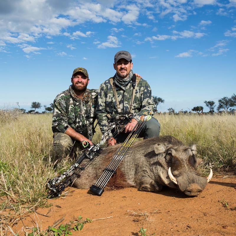 The first morning out, we stalked gemsbuck, eland, and warthog. We had two blown stalks on gemsbuck but arrowed a good warthog. I took a tremendous Nyala bull at 40 yards with my bow that first evening.