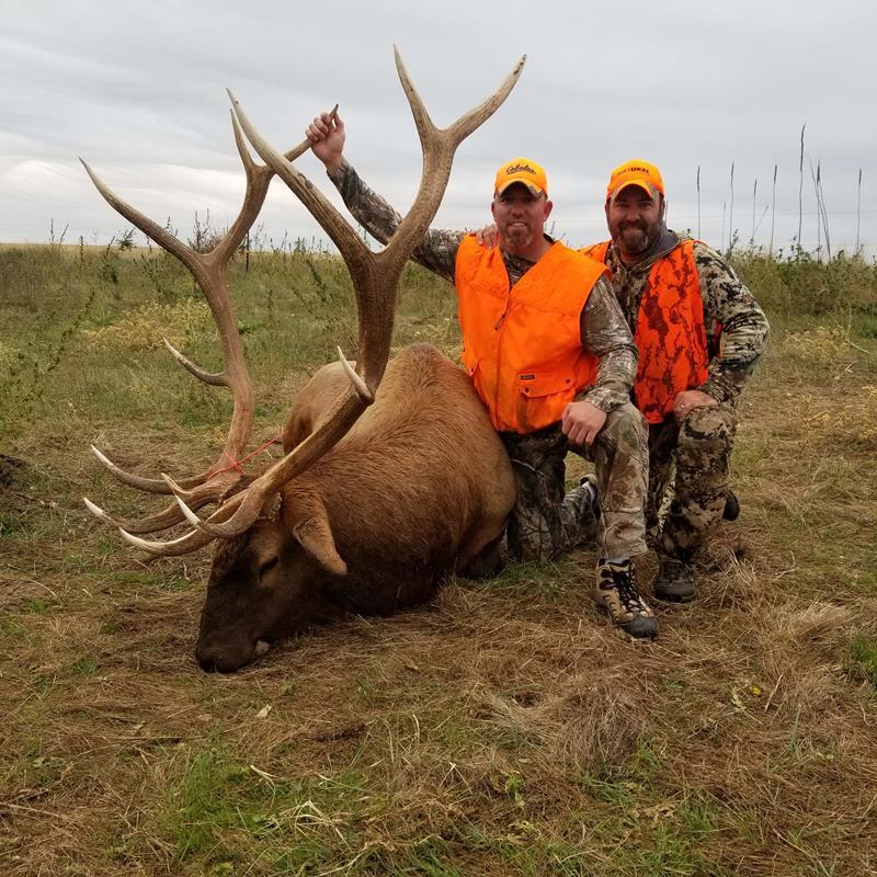 Nebraska. Growing up in southwest Nebraska, hunting mule deer and whitetails was commonplace, but elk were unheard of. However, over the past 20 years or so, the Rocky Mountain elk have moved back into the Cornhusker State.There are now small herds spread all across western Nebraska with several limited draw hunting units. To draw one of these coveted tags is hard, to say the least, and it is a once-in-a-lifetime tag. In 2015, my cousin, Clark, was the first of my hunting friends to draw this tag and I was fortunate enough to guide him to a great 8x7, 360? bull. After the 2017 summer draw, I was informed by my longtime friend, Josh, that he had also drawn the tag, so the scouting began.I planned on hunting the same farm as we did two years ago as there are always great bulls in this herd. I set trail cameras out in July and immediately started receiving elk photos. The crazy part about hunting elk in central Nebraska is that they basically live in the cornfields, believe it or not. There is a canyon system full of cedar trees about a mile off the cornfields that they split their time in, but the farmland is where it’s at once it comes time to hunt. It wasn’t until about the end of August during the pre-rut that I started getting herd bull photos on the trail cams, but it didn’t take long to see that we had several really great bulls on the property. Our Nebraska elk are some of the biggest elk in the country. With limited hunting pressure, the elk can live full lives and they are on full feed in these corn fields, so 1,200+ pound elk are not uncommon.Nebraska has an archery season that opens a couple weeks before the general rifle season, so we took advantage of the extra hunt time. Josh is not a bowhunter, but crossbows are legal here, and after a day of practice for Josh, we both felt confident he could get it done. The first morning was one of those magical mornings where everything worked perfect. We walked the edge of a cornfield just after legal light and had three different bulls work into us with just a couple cow calls. Each bull was bigger than the last, but they all acted like they were trying to get away from something behind them. We moved to the far edge of the field and quickly found out why. With a deep, throaty, growling bugle to our south, we both knew this was a different caliber of bull. We set up just inside the cornfield, and I gave a light bugle and he came in on a string. The bull came to 30 yards but was facing right into us. I know some guys would take this shot, but with Josh’s limited archery experience, we decided this was not the shot for us. It was excruciatingly painful to be so close to a bull that we guessed somewhere in the 380s nontypical and not have a shot. The bull had us pegged, and once he had enough, he spooked off and I was unable to stop him for a broadside shot. It was a great start to Josh’s hunt, so our hopes were now sky-high. We hunted that night and the next morning having bulls around us on every hunt, just not the right bull. With such big bulls around and this being a once-in-a-lifetime tag, we both agreed only a great bull would do. The weather turned rainy on the third day, and we decided to hang up the crossbow for a few days. We tried again the next weekend and had another encounter with a 320 class bull, but again it was just not what we were looking for. It was now time to prepare for the rifle season.Opening day of rifle season, we duplicated the first day of archery season. We worked our way to the far edge of the same cornfield just after legal shooting light and had multiple bulls bugling out in the corn. We no more than set up than we had a young 4x4 and 6x6 come within 60 yards of us as they worked back towards the canyons. We had heard another bugle come from further south, and after about 10 minutes, he showed up pushing three cows. Even though it was still a little dark with the cloud cover that morning, we could see his huge tan body and knew it had to be a good herd bull. We waited for what seemed like an eternity for the bull to work down the field edge into range, but after about 30 minutes, the bull took his cows on a trot across the draw in the wrong direction and things began to not look good. I told Josh our only chance was to run across the same draw just north of them and hope they slowed down on top of the next hill so we could get ahead of them for the shot. My plan worked as scripted, and the bull walked right out in front of us at 250 yards. Once I knew Josh was up on the sticks and on the bull, I cow called the bull to a stop and the rest was history. The bull went about 50 yards and was down for good.As we walked up to the bull, I couldn’t help but notice the sheer size of the body. He was a 6x7 that green scored 366?. The bull was aged at at least 10 years old, so he was a great animal to take out of the herd. This is a hunting memory that Josh and I will remember for a lifetime, and it is a bull that will truly last a lifetime.