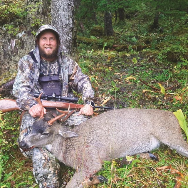 Gene Bates, and my great uncle, Charles Bates. Two family friends, Jimmy Head and Jeff Head, also accompanied me on this once-in-a-lifetime trip.After being invited on the trip in February of 2021, I started the long, agonizing wait for September by watching every video I could find on the Prince of Wales Island and Sitka blacktail deer hunting. I also researched every article I could find on blacktail deer and the equipment I would need to have a successful hunt. It was clear that this New Mexico desert rat was in for an amazing experience. I spent nine months getting ready for my first experience in a rainforest chasing the allusive blacktail deer. I had to get all new hiking gear, camo, raingear, and jackets to accommodate the amount of rain that was expected. I also spent hours looking for places to hunt on onXmaps, studying the roads and high-country terrain for spots that would potentially have deer.Finally, after nine long months, the day arrived. We left Silver City, New Mexico at 12 p.m., and it was 91 degrees Fahrenheit. We landed the next day in Ketchikan, Alaska at 3 p.m., and it was 60 degrees and raining. From there, we took a ferry to the Prince of Wales Island and arrived at our lodge at 10 p.m. that night.The first day of the hunt, after talking to the locals, watching videos, and making game plans, my family and I decided I was going to shoot the first league buck I was able to. We started out driving up roads that would get us closer to the alpine to eliminate as much walking through the thick brush that was mixed with rain, making it extremely slick and muddy. We had made it to a ridge just below the alpine when my brother, Austin, (who was hunting with a bow) froze and said, “There’s a buck!”We all looked up, and at 97 yards, there he was looking right at us. There was no time to waste. I threw my .243 Weatherby up, settling my scope to make sure it was a legal buck. Once I confirmed it was, I squeezed my trigger, making a perfect shot through both lungs. The deer jumped and ran five yards around a tree before dying in a creek about two feet wide. It took about 20 minutes for my dad and me to walk through the brush up the side of the hill to get to him.This hunt will always be one of the most exciting because of the new experiences and the family members who were able to hunt with me.
